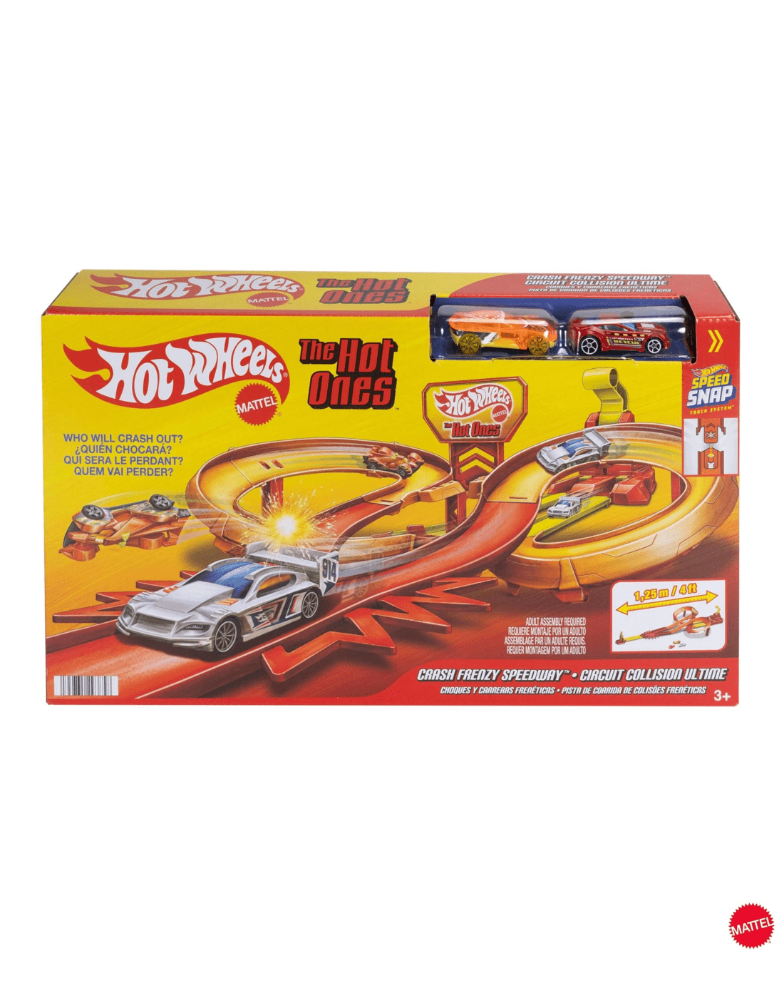 • In The Hot Ones Crash Speedway Frenzy Track Set, kids can race their Hot Wheels toy cars through an epic crash zone where only one car can win!