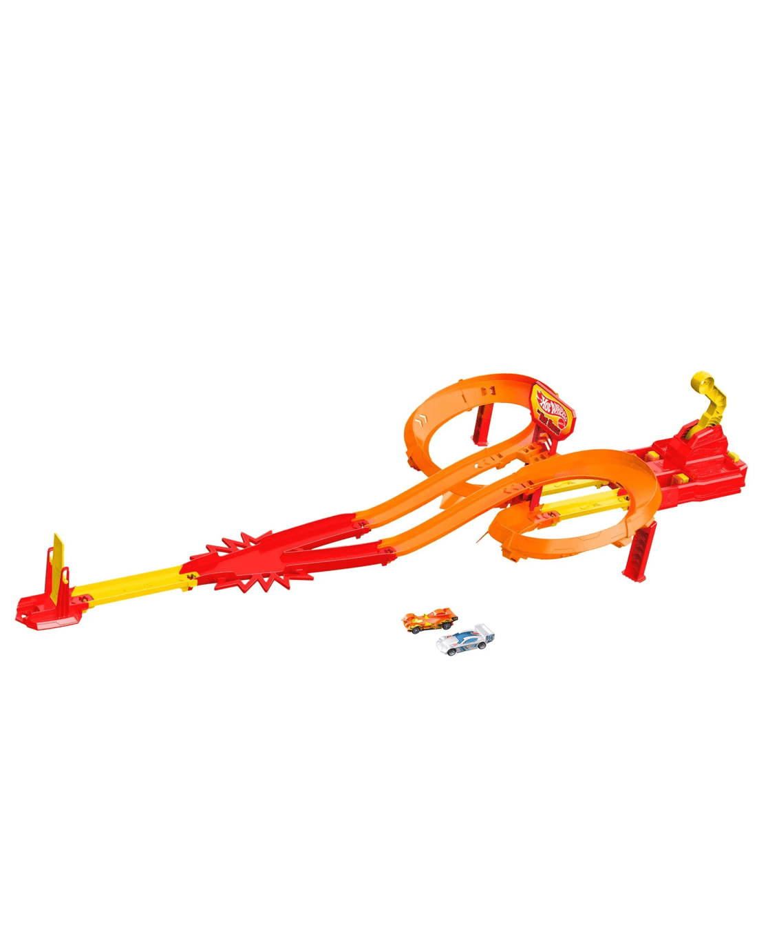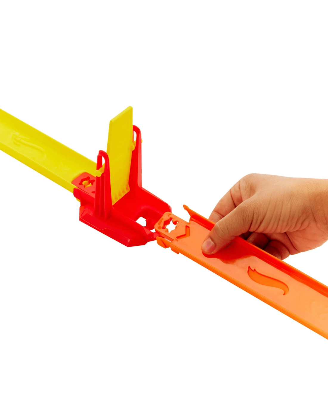 • This set features Speed Snap Track for simplified track builds and includes an adapter that works with legacy Hot Wheels e-track.