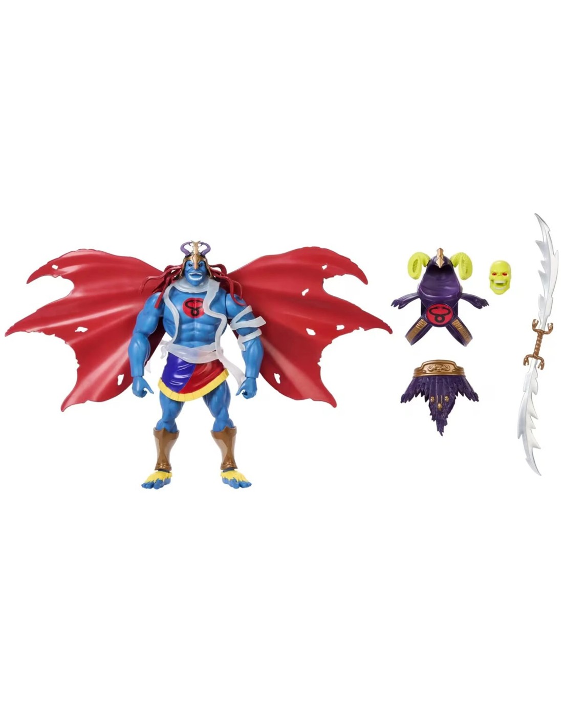 - At 5.5-inch/14cm scale this figure has 16 movable joints and a double-ended Sword of Plun-Darr accessory. Swappable heads and armor transform Mumm-Ra to Skell-Ra, and back again!