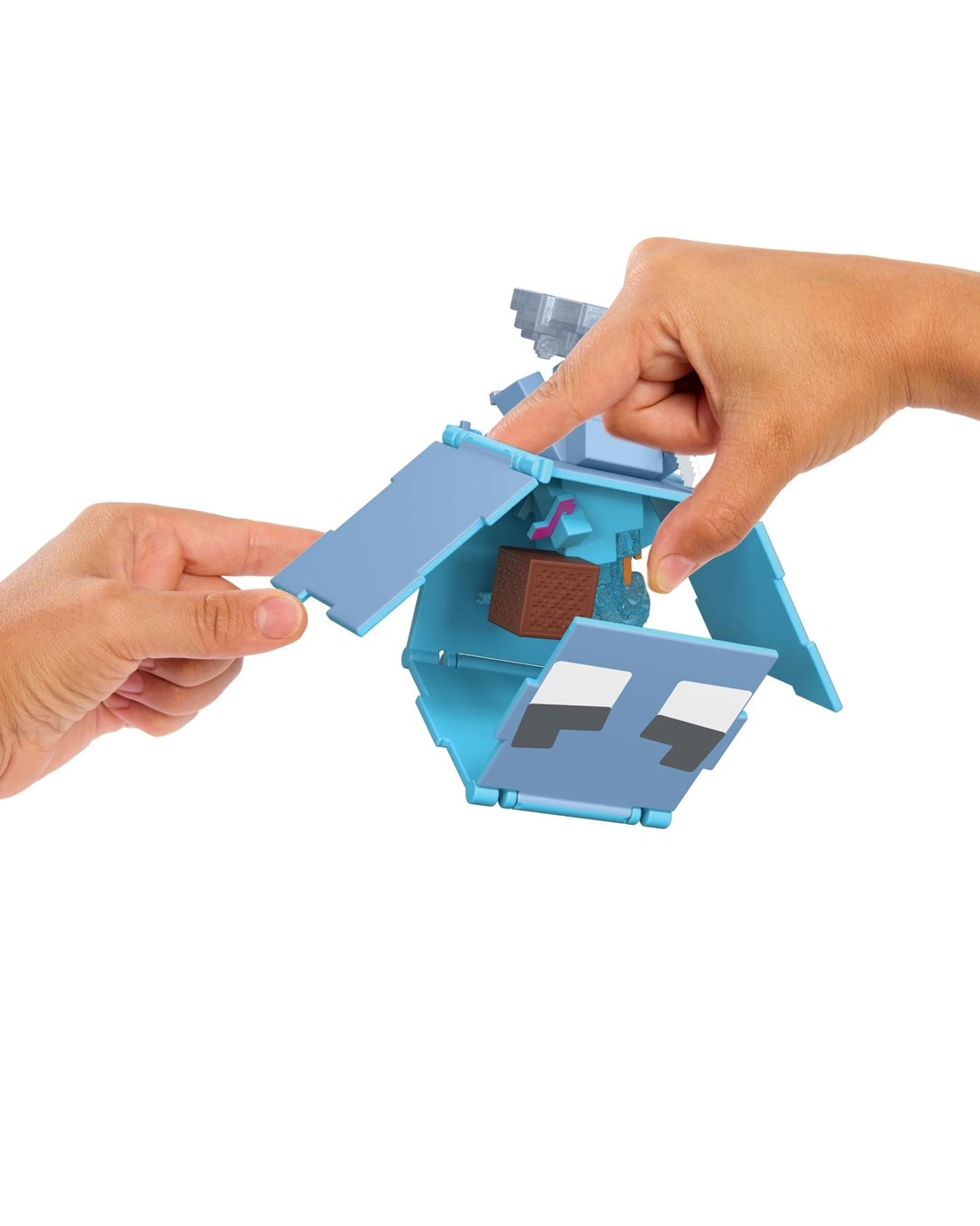 - Lift the panels on the head of each collectible and lock them in place to discover a different figure in seconds!