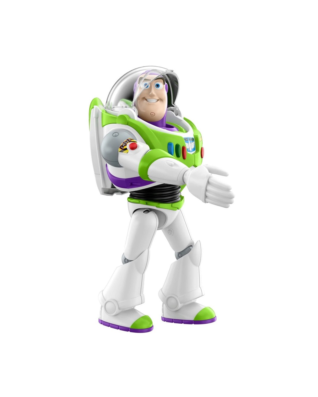 There's a secret mission in uncharted space. Let's go! This large, talking, action-chopping Buzz Lightyear will bring big thrills and laughter to fans of the Space Ranger from Disney and Pixar's Toy Story. This 30cm scale action figure of the spaceman speaks 30+ movie phrases, like 'To infinity, and beyond!' by activating the red button on his chest. And that's not all! He also makes a dynamic chopping action complete with sounds -- just press the button on his back! With multiple movable joints in addition to the special features, fans will discover interactive fun on a large scale. This Buzz Lightyear figure has a truly movie-authentic look with his iconic Space Ranger suit, complete with a helmet that opens and closes. Kids can relive all their favourite scenes from the Toy Story films, with the phrases and action coming directly from Buzz himself Ages 4 +