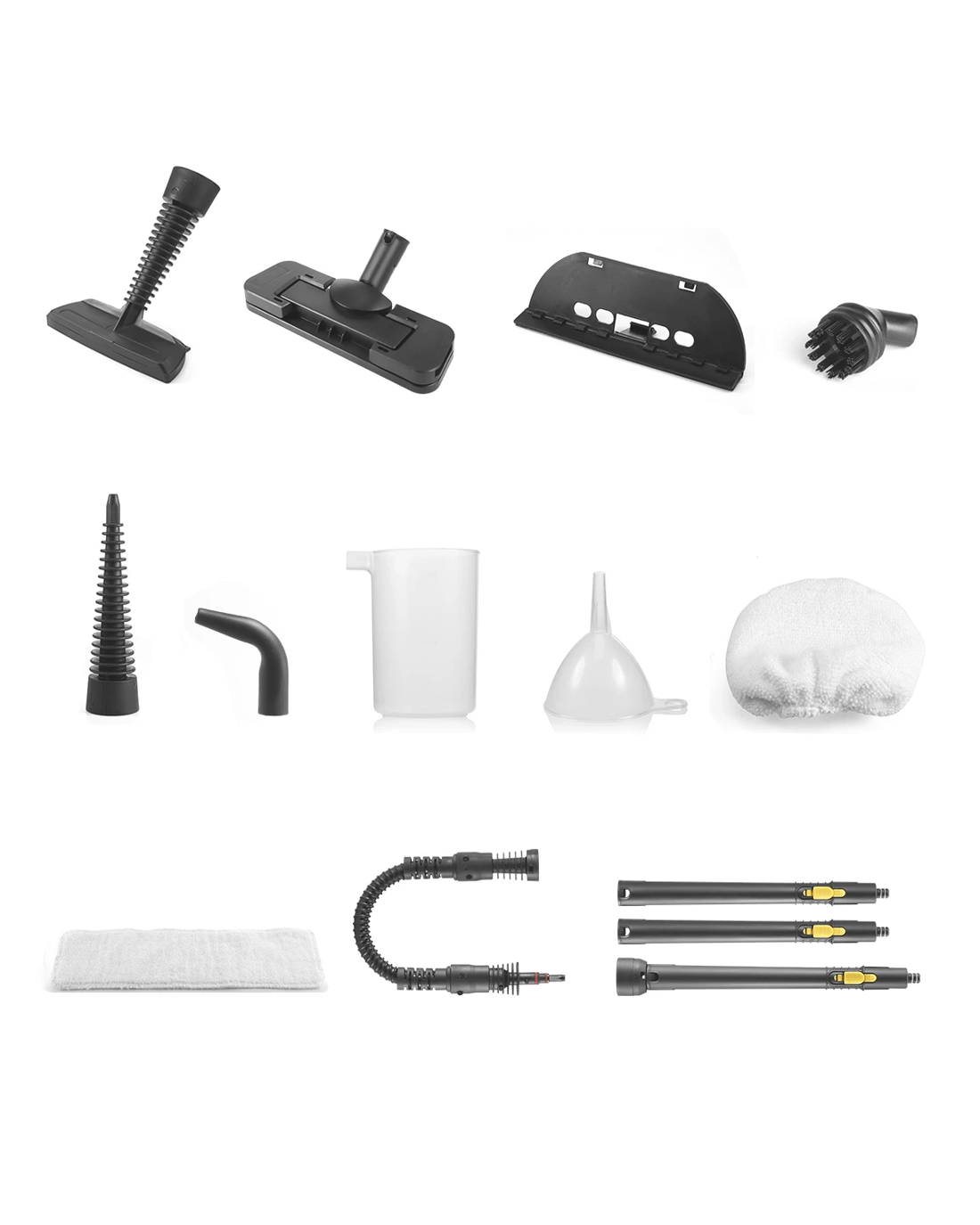 If you have a cleaning job that requires a bit more power than your usual hose spray down, you need not look any further for the perfect tool to complete the job! This 13-in-1 handheld steam cleaning tool gives you all the power you need to disinfect and sterilize, clean doors and windows, clean floorboards, and more! Featuring a long list of accessories noted in the features below, there is no job that withstands the power of the handheld steam cleaner. Lightweight and simple to use, the handheld steam cleaner will quickly become one of your most valuable cleaning tools. Simply detach one nozzle and swap it out for another to complete a different job. Save yourself the money on expensive cleaning solutions and wipes. Nothing will go uncleaned. Disinfection and sterilization: Install the long spray cup on the short spray nozzle and then point and aim. Press down on the steam button and the high temperature will eradicated bacteria. Cleaning clothes: Install the spray cup with hairbrush on the short nozzle and then mount the towel sleeve. Aim the spray cup at the clothes and press down on the steam button and move the hairbrush up and down as well as to the left and to the right to cover the entire area of the clothes. Cleaning doors and windows Install the spray cup with hairbrush on the short spray nozzle and then install the spray cup for doors/windows on it. Aim the spray cup at the door or window and press down on the steam button and move the hairbrush up and down as well as to the left and to the right at the same time to cover the entire area of the door or window. Cleaning floorboards You can choose either the extended spray cup or the short spray nozzle. Then install the bent spray cup or round spray cup depending on your needs. Aim the spray cup at the floorboard and press down on the steam button to remove the dirt and stains in wall corners and on the floor.