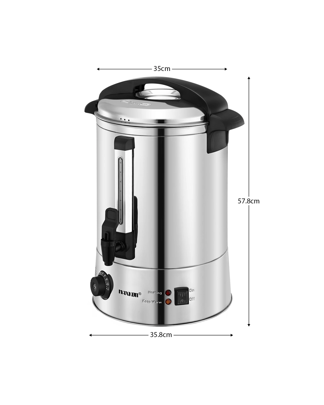 This Hot Water Urn from Maxkon boasts a large volume of 20L litres, able to keep hot or cold water being served for a long time. In addition to water, you can also have juice, cider or tea kept warm in this super insulation urn. The excellent insulation is attributed to its double-layer wall of stainless steel. The two-layer structure has better performance in insulating water temperature while other similar products in the market usually adopt a single-layer design. On top of that, this water dispenser can also work as a heater, allowing you to regulate the water temperature from 30 Celsius Degrees to 110. It is safe to use, as boil dry protection and thermal fuse are equipped. Better still, the transparent water gauge is convenient for checking water consumption, and the tap makes it easy to get water. This hot water can is perfect for restaurants, cafeterias, beverage shops and more.