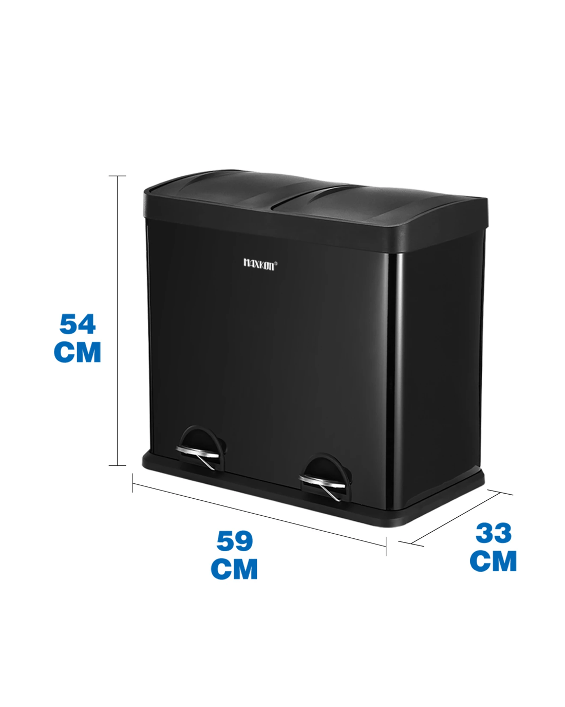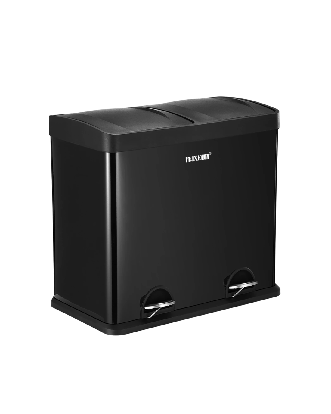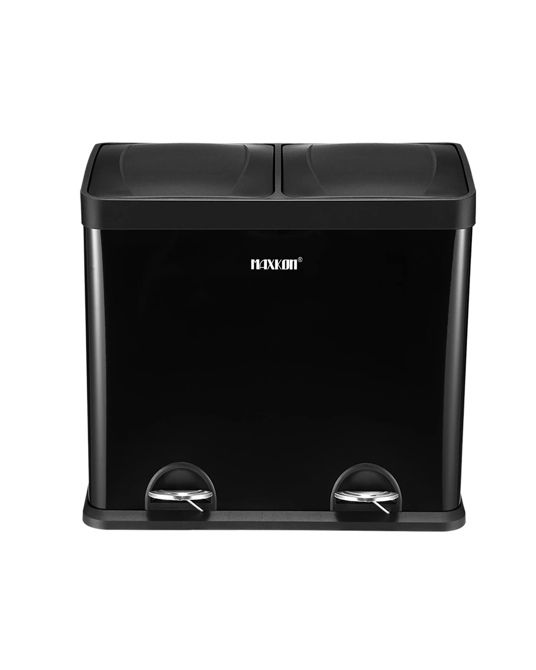 Sold by AuswayMaxkon 48L Rubbish Bin Dual Compartment Pedal Recycling Trashcan Kitchen Waste Garbage Household Stepbin Coated Steel