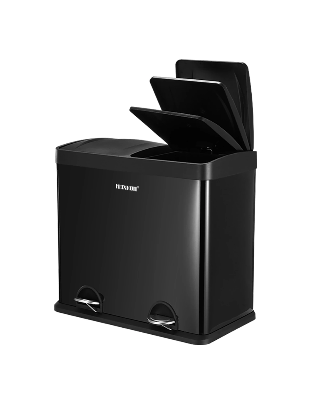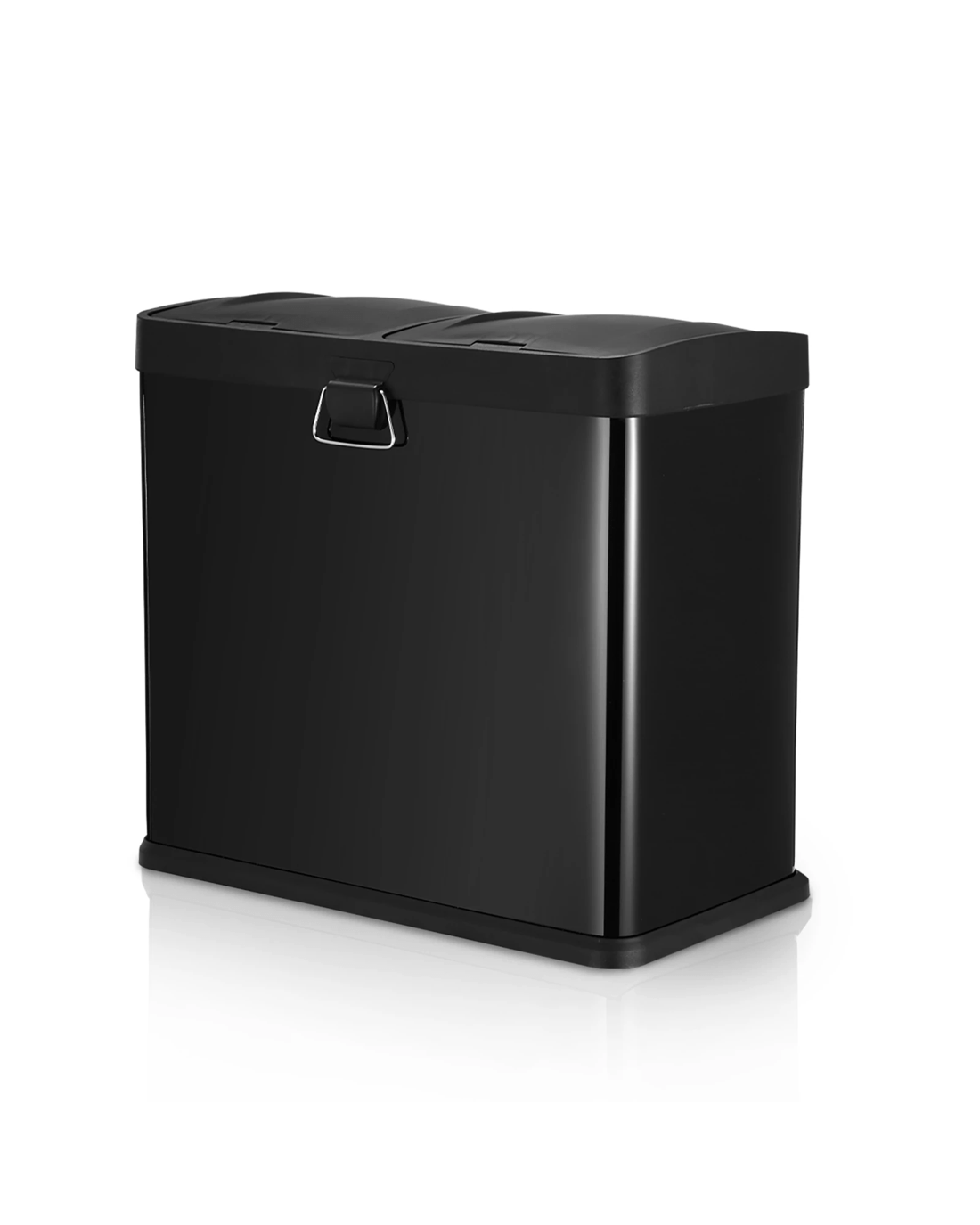This Dual Compartment Pedal Bin can easily keep your kitchen tidy and clean. Coming with two inner bins, the trash container unit allows you to separate dry and wet waste, or recyclable and non-recyclable waste at ease. Each bin contains 24-Litre capacity, able to offer up to 48 Litres of waste disposal volume, and for convenience, both bins come with easy-to-grip handles. The plastic lids can be closed off quietly, and prevent odours from escaping. The pedals are large and solid enough for easy use. Made of black powder-coated steel, the waste bin unit is anti-fingerprint, anti-rust and waterproof, so to last its service for years and years. What's more, it is easy to clean. To maintain good hygiene and convenient living space, don't miss this reliable dual compartment pedal bin unit.