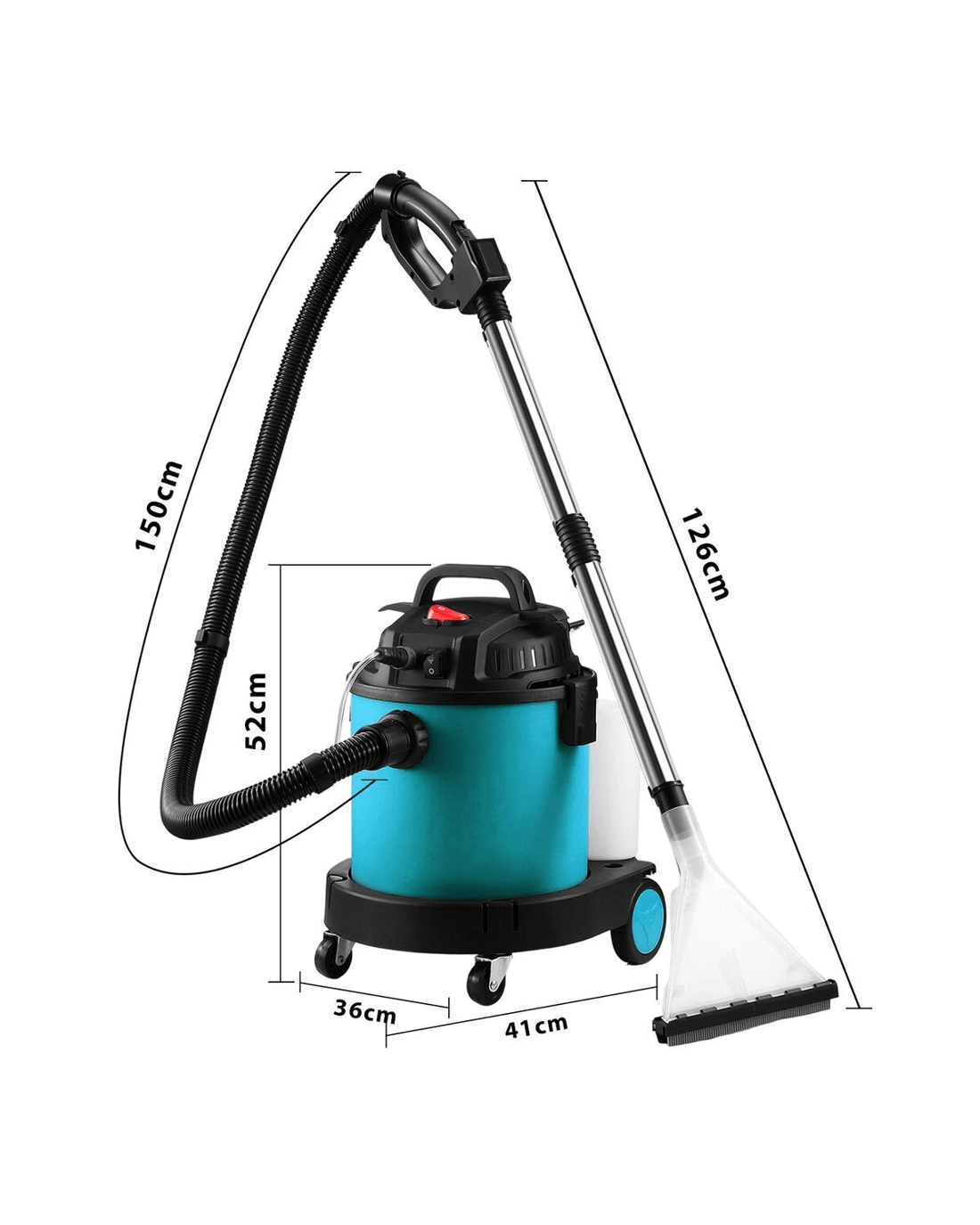 Enhance the cleanliness and lifespan of your carpet by removing deep-seated dirt and allergens with this 7-in-1 Carpet Cleaner Vacuum Wet and Dry Vac Mop Floor Sofa Fabric Cleaning Machine. This versatile machine excels in cleaning efficiency and can handle various surfaces, including carpets, rugs, sofas, and floors. It features a powerful 17kPa suction and deep-cleaning capabilities, equipped with six different brushes to easily manage spills, stains, and debris. Additionally, the carpet cleaner has a 20-liter dust tank, a 4-liter water or detergent tank, and three paper bags for dry cleaning dust collection. With an operating noise level of 80 dB, it ensures minimal disturbance. For added convenience, our floor cleaning machine has smooth wheels for easy mobility, allowing you to pull around from one space to another.