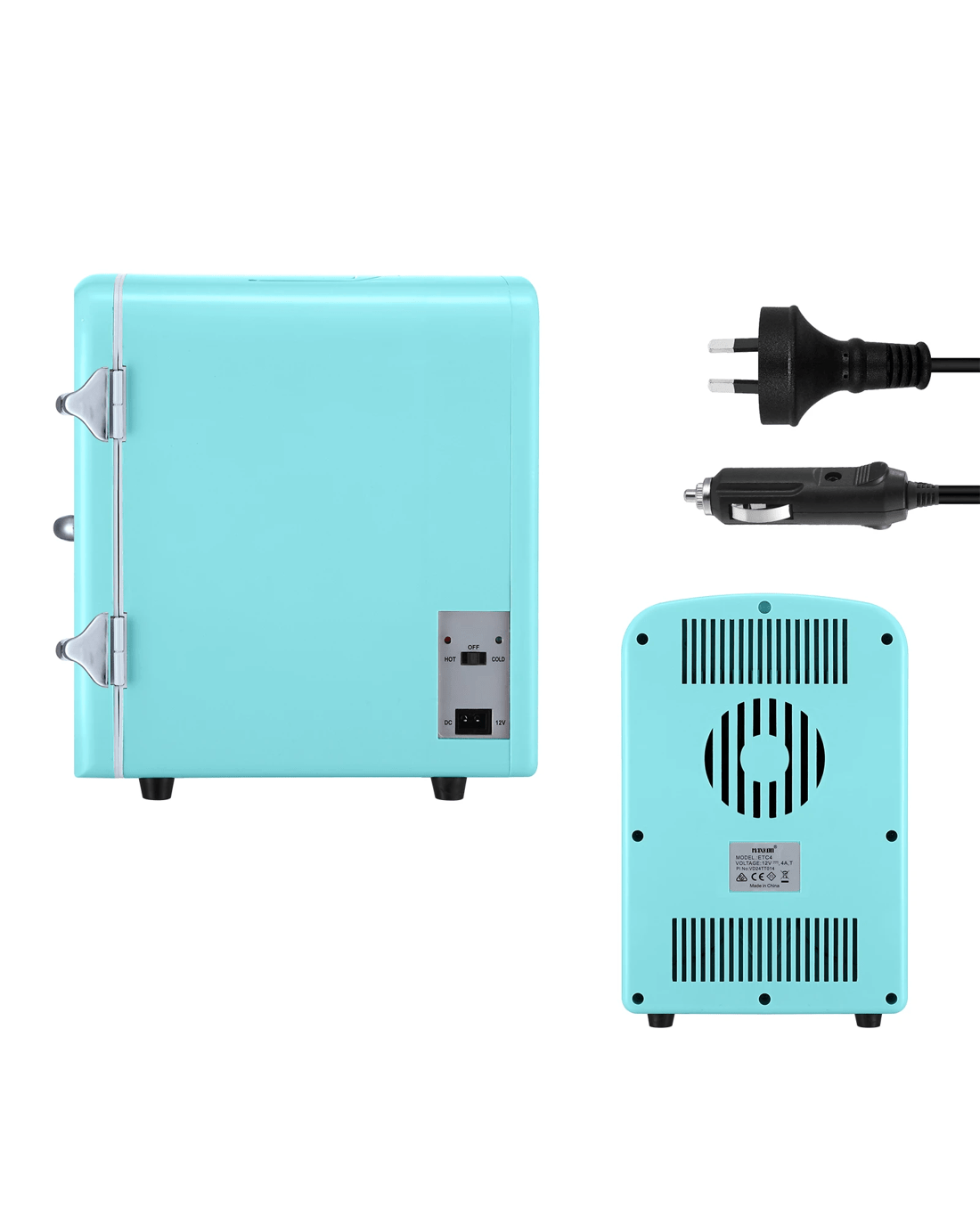 Give yourself easier access to chilled drinks or warm foods at home or on the road with this Maxkon mini fridge portable cooler warmer countertop refrigerator. Able to hold up to 6 cans, this small fridge sports a generous 4-litre capacity, a removable shelf, and a portable handle, making it great for personal spaces, road trips, camping, and more. The energy-efficient thermoelectric system makes the fridge easy to switch from beverage cooler to food warmer, allowing you to choose to cool up to 15°C or warm up to 60°C with the flip of a switch. Moreover, an efficient cooling temperature is perfect for foods, beverages, medications, skincare, makeup, and beauty essentials. Besides, the standard home outlet and 12V car adapter enable you to use this fridge at home, in the office, or in your van on your travels.