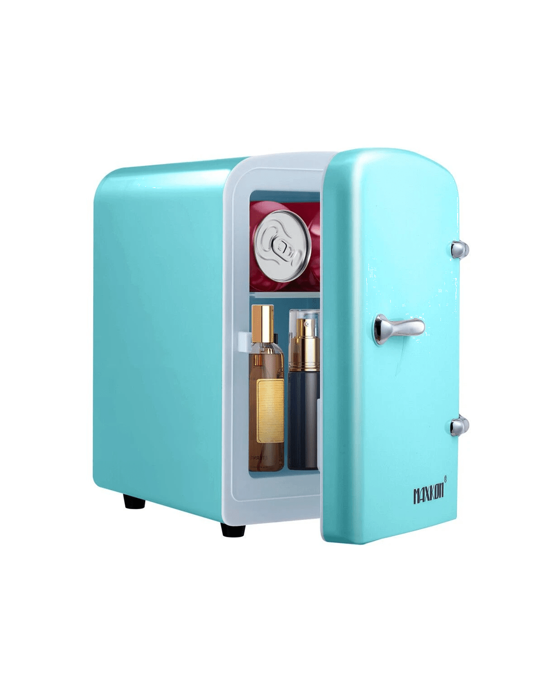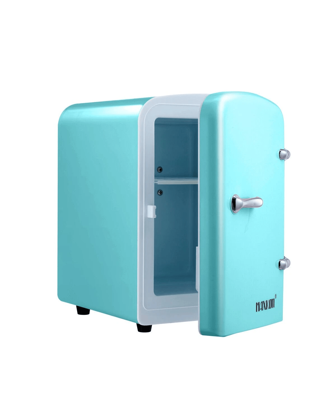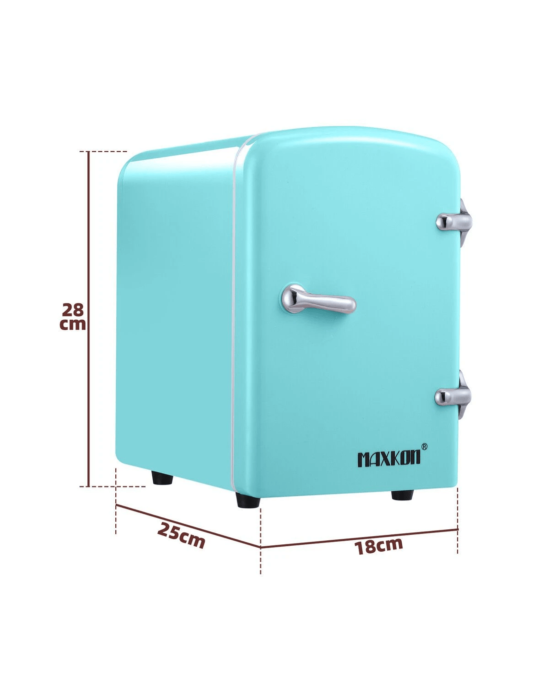 Give yourself easier access to chilled drinks or warm foods at home or on the road with this Maxkon mini fridge portable cooler warmer countertop refrigerator. Able to hold up to 6 cans, this small fridge sports a generous 4-litre capacity, a removable shelf, and a portable handle, making it great for personal spaces, road trips, camping, and more. The energy-efficient thermoelectric system makes the fridge easy to switch from beverage cooler to food warmer, allowing you to choose to cool up to 15°C or warm up to 60°C with the flip of a switch. Moreover, an efficient cooling temperature is perfect for foods, beverages, medications, skincare, makeup, and beauty essentials. Besides, the standard home outlet and 12V car adapter enable you to use this fridge at home, in the office, or in your van on your travels.