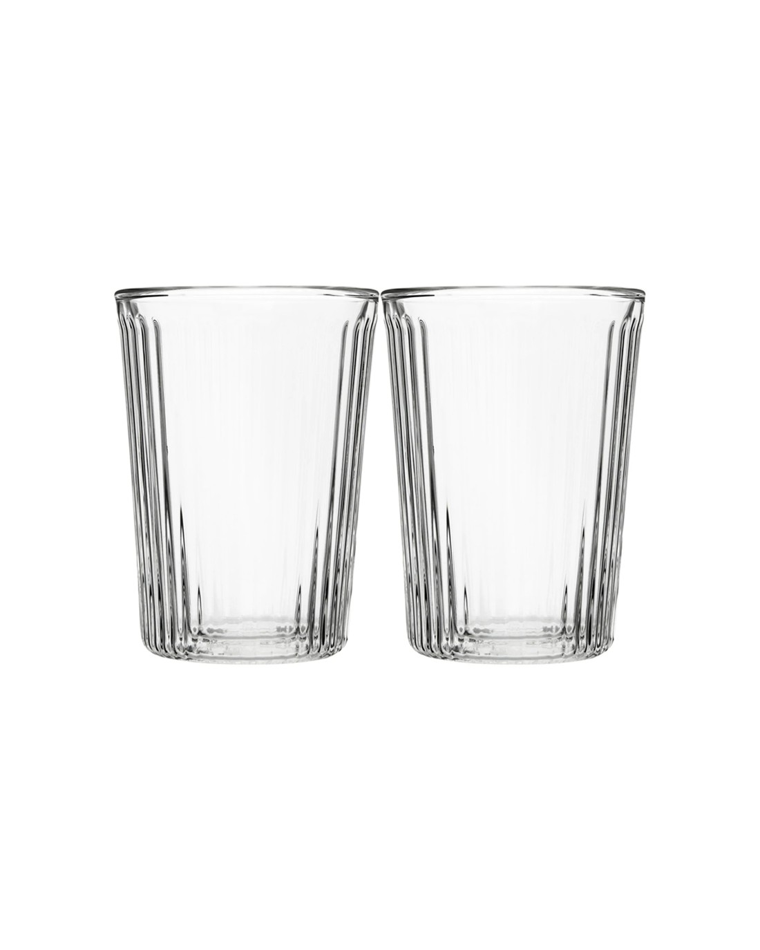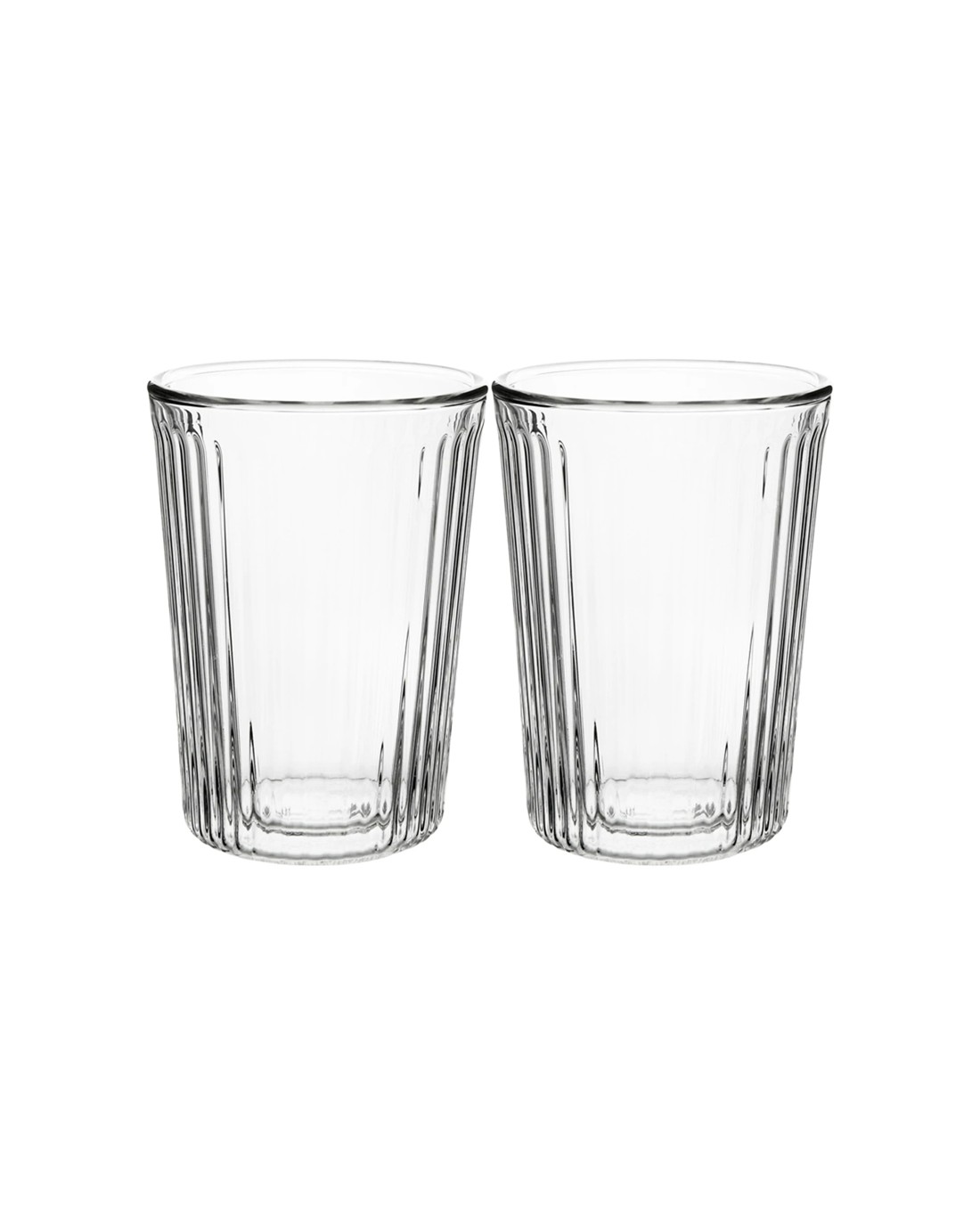 Crafted from high-quality borosilicate glass, these cups are both resilient and heat resistant. The distinct stripey design adds a contemporary aesthetic, making them perfect for serving coffee, tea, or any favourite beverage.