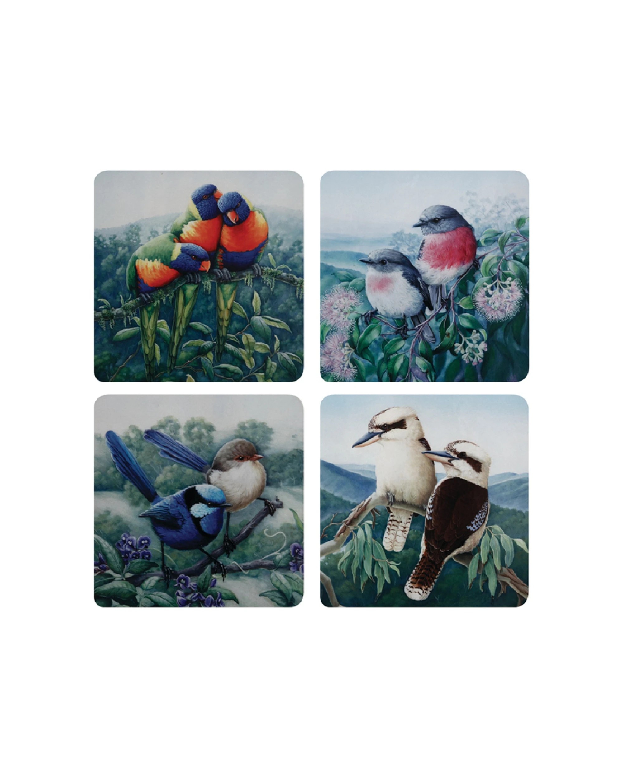 Maxwell & Williams 4 Pack Birds Of Australia Coasters 10.5cm Gift Box. - Multi