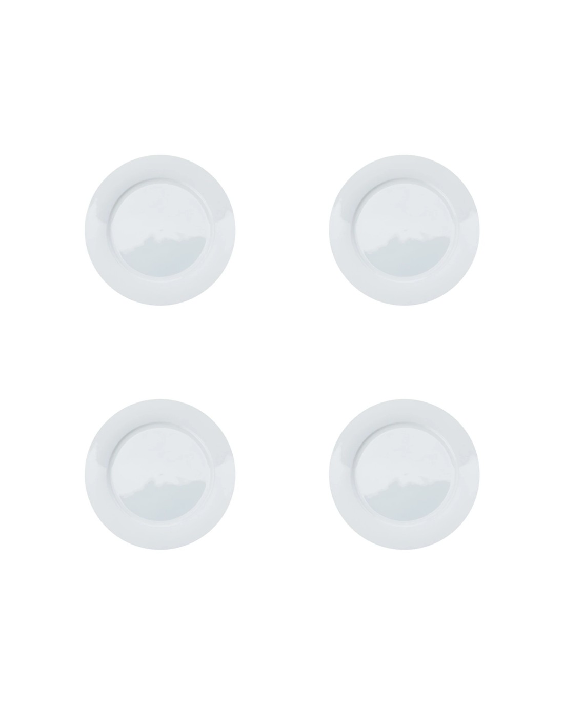The set includes four 27.5cm plates featuring a timeless design with a sleek, minimalist style that adds a touch of svelte sophistication to your table setting. The smooth, glossy finish and uniform size create an attractive and cohesive presentation for your meals.