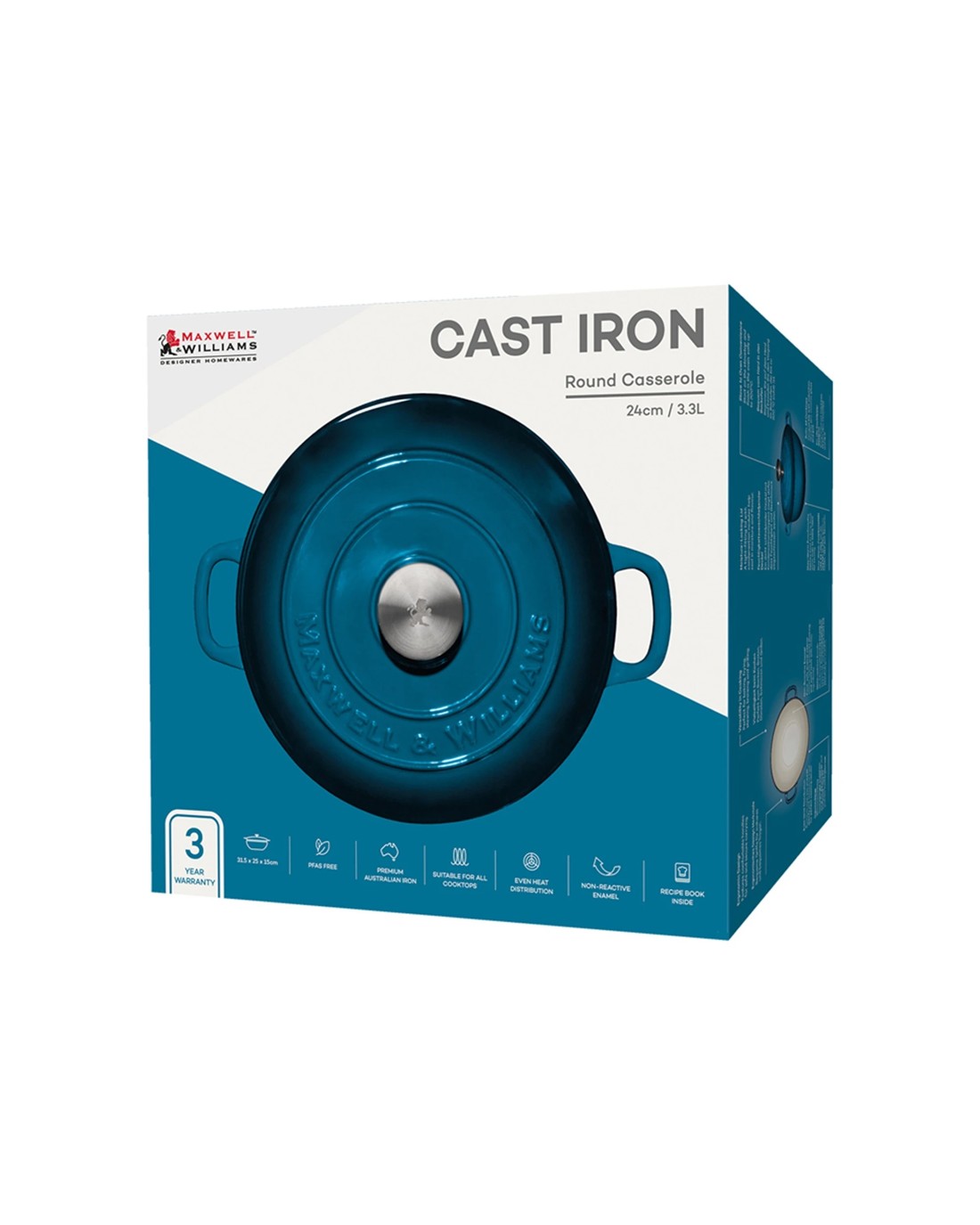 Sold by Sir John's GiftsMaxwell & Williams Cast Iron Round Casserole 24cm 3.3l Dutch Oven Cookware - Blue