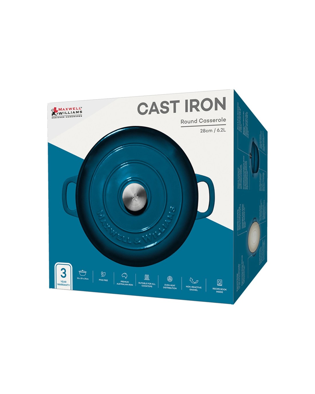Maxwell & Williams Cast Iron Round Casserole 28cm 6.2l Oven Safe Cookware - Blue