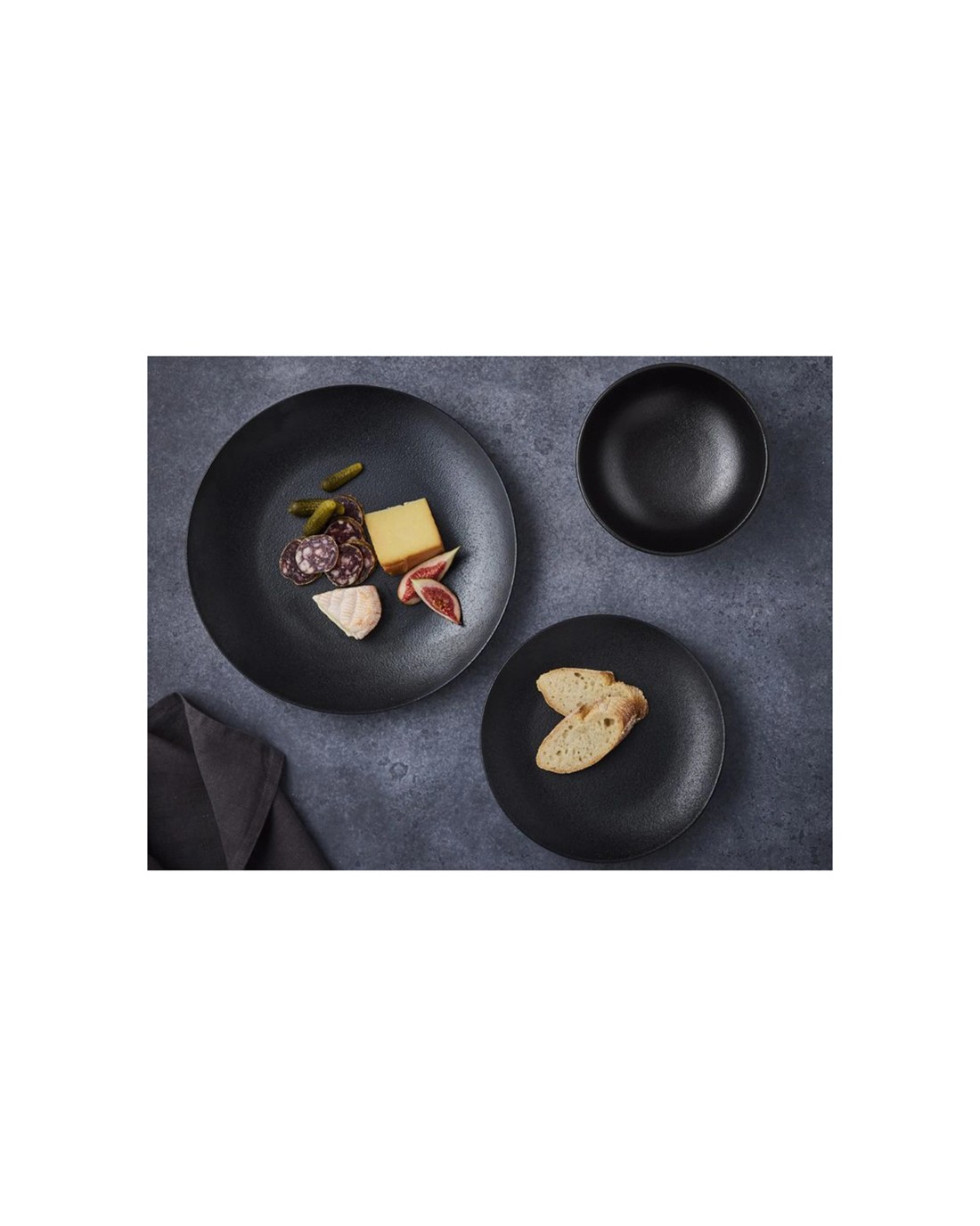 This chic dinner set includes a versatile selection of dinner plates, side plates and bowls, finished with a textured glaze. The Caviar range is a bold and contemporary alternative to classic white dinnerware. Rich and luxurious, it provides the perfect backdrop for all your meals.
