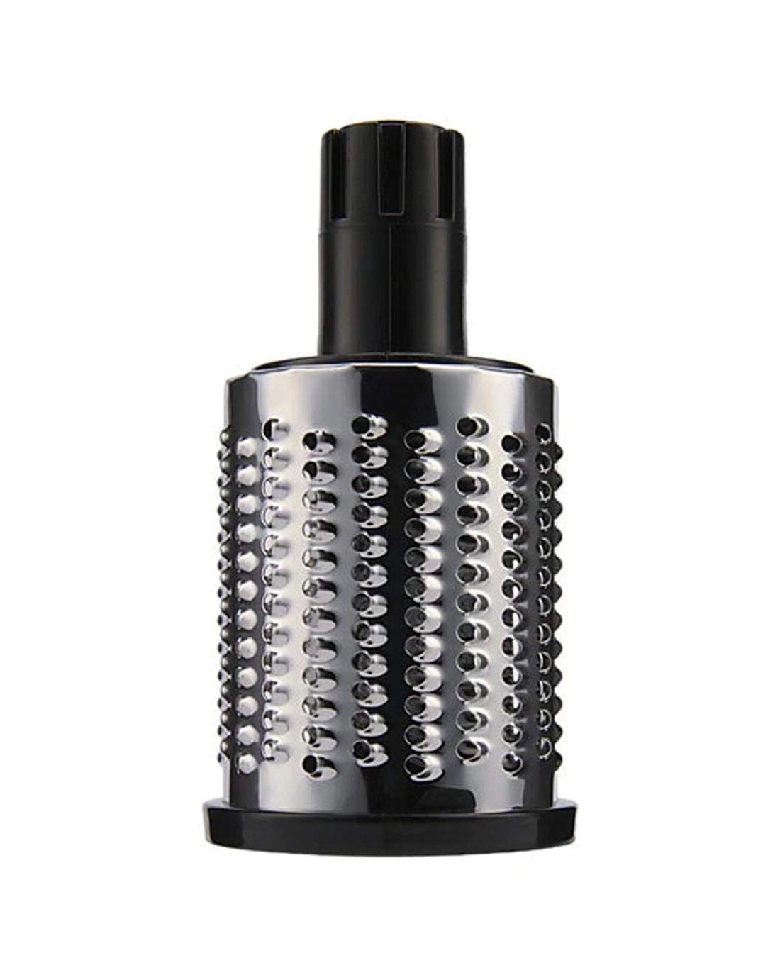 - Comes with three interchangeable stainless-steel drums: Slicer, Fine grater, and Coarse grater