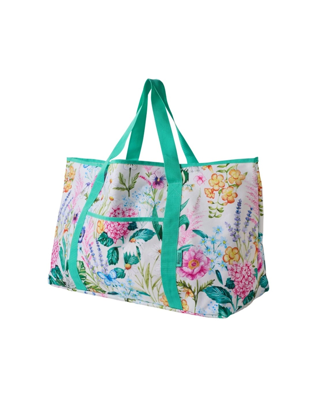 The Maxwell & Williams Botanica Oversized Tote Bag is a stylish and practical accessory designed for everyday use. With its vibrant floral design and generous 70L capacity, it is perfect for beach days, shopping, picnics, or running errands. Its lightweight nature makes it easy to carry while offering ample space for all your essentials.The tote features two teal handles and matching teal trim along the top edge, complemented by vertical teal straps for added style and durability. The exterior includes a convenient front pocket lined with teal trim, ideal for small items like keys or a phone. Made from recycled PET plastic, this bag combines eco-friendly materials with long-lasting performance, making it an excellent choice for environmentally conscious consumers.Key Features:Oversized Capacity for Versatile Use Provides plenty of space for beach gear, shopping, or daily errands, accommodating all your essentials easily.Made from Recycled PET Plastic Combines durability with eco-friendly materials, supporting sustainable living.Lightweight and Reusable Easy to carry without adding extra weight, suitable for frequent use and environmentally conscious shopping.Stylish Floral Design with Bright Colours Enhances casual outfits with vibrant patterns, suitable for various social occasions.Front Pocket for Small Items Offers convenient storage for keys, phones, or other small essentials, keeping them easily accessible.Specifications:Brand: Maxwell & WilliamsProduct Type: Tote BagDesign: Floral pattern with teal handles and trimCapacity: 70 litresFeatures: Front pocket, vertical teal straps, spacious interiorIncludes: