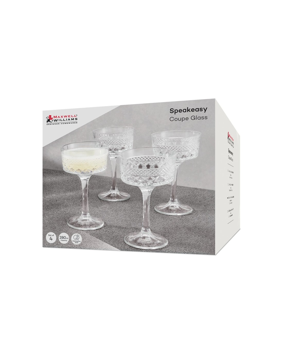 Sold by Sir John's GiftsMaxwell & Williams Pack Of 4 Speakeasy Coupe High Quality Glasses 280ml - Plain