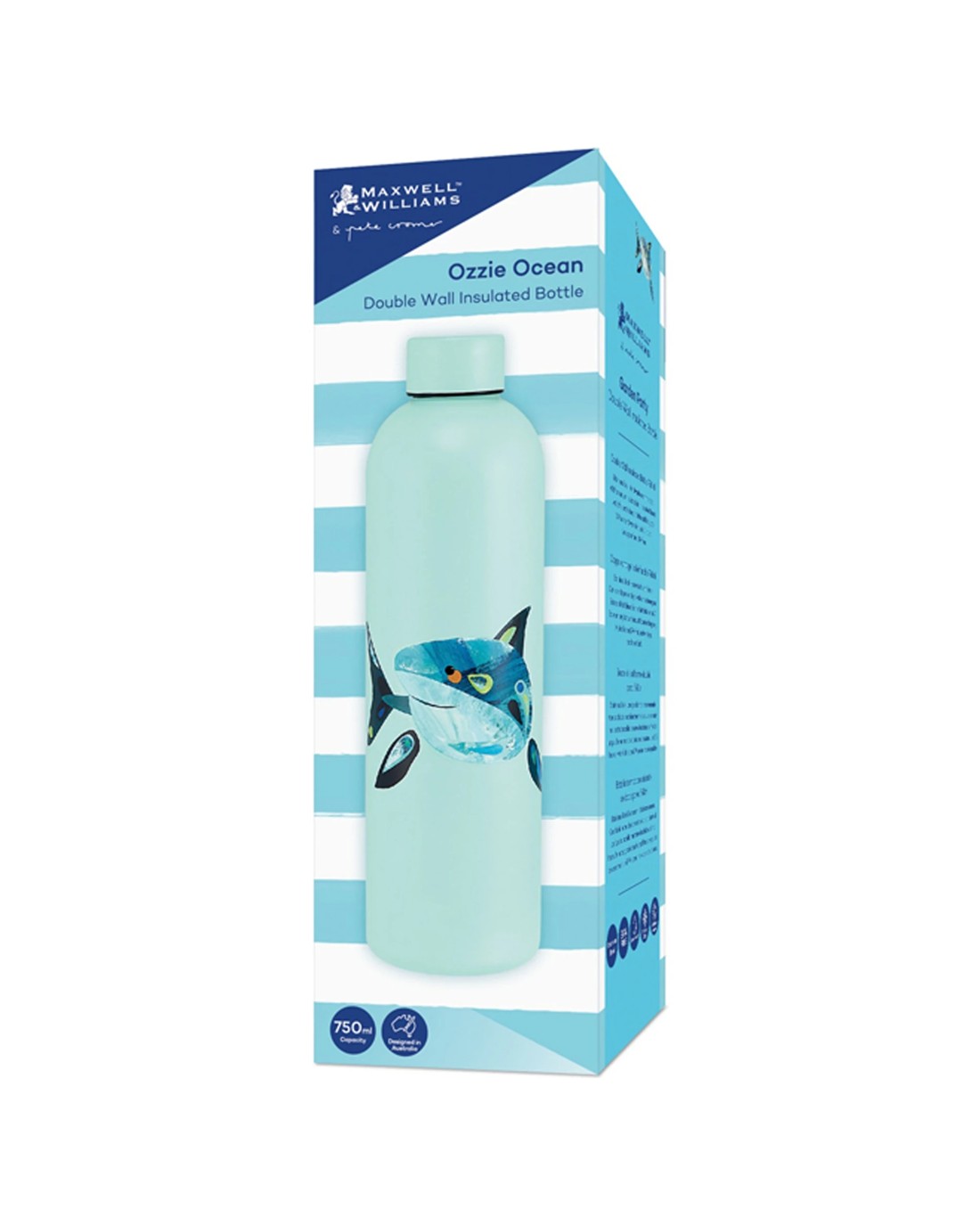 The Maxwell and Williams Pete Cromer Ozzie Ocean Insulated Bottle is designed for keeping your drinks hot or cold for extended periods. Crafted with style and practicality in mind, this 750ml vacuum flask features a vibrant ocean-themed shark design, making it ideal for everyday use or as a thoughtful gift for marine life enthusiasts.