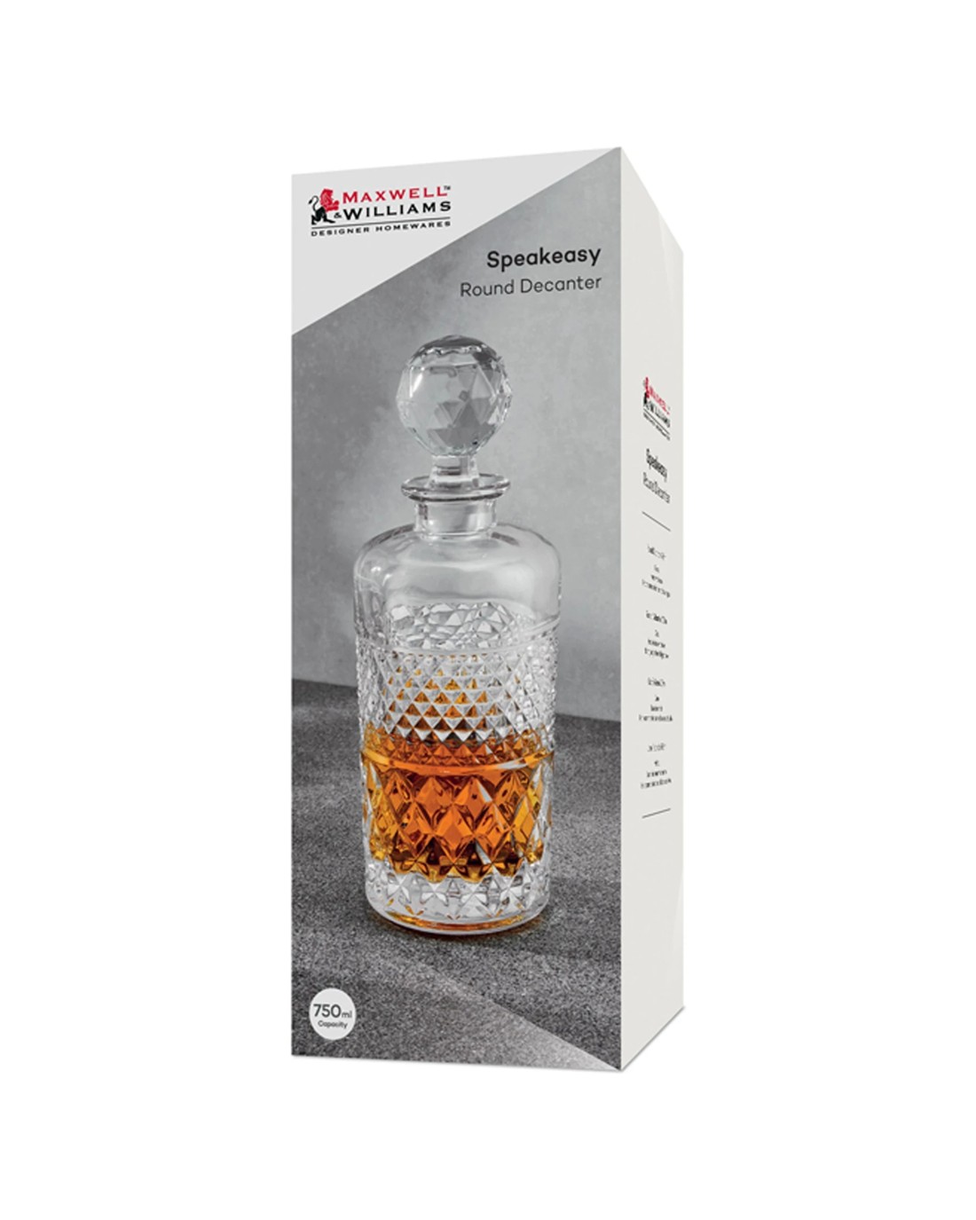 The Maxwell And Williams Speakeasy Round Decanter is designed for serving beverages in a stylish and functional way. Ideal for home bars and dining settings, this decanter combines quality craftsmanship with an elegant round shape, perfect for showcasing your favourite spirits.