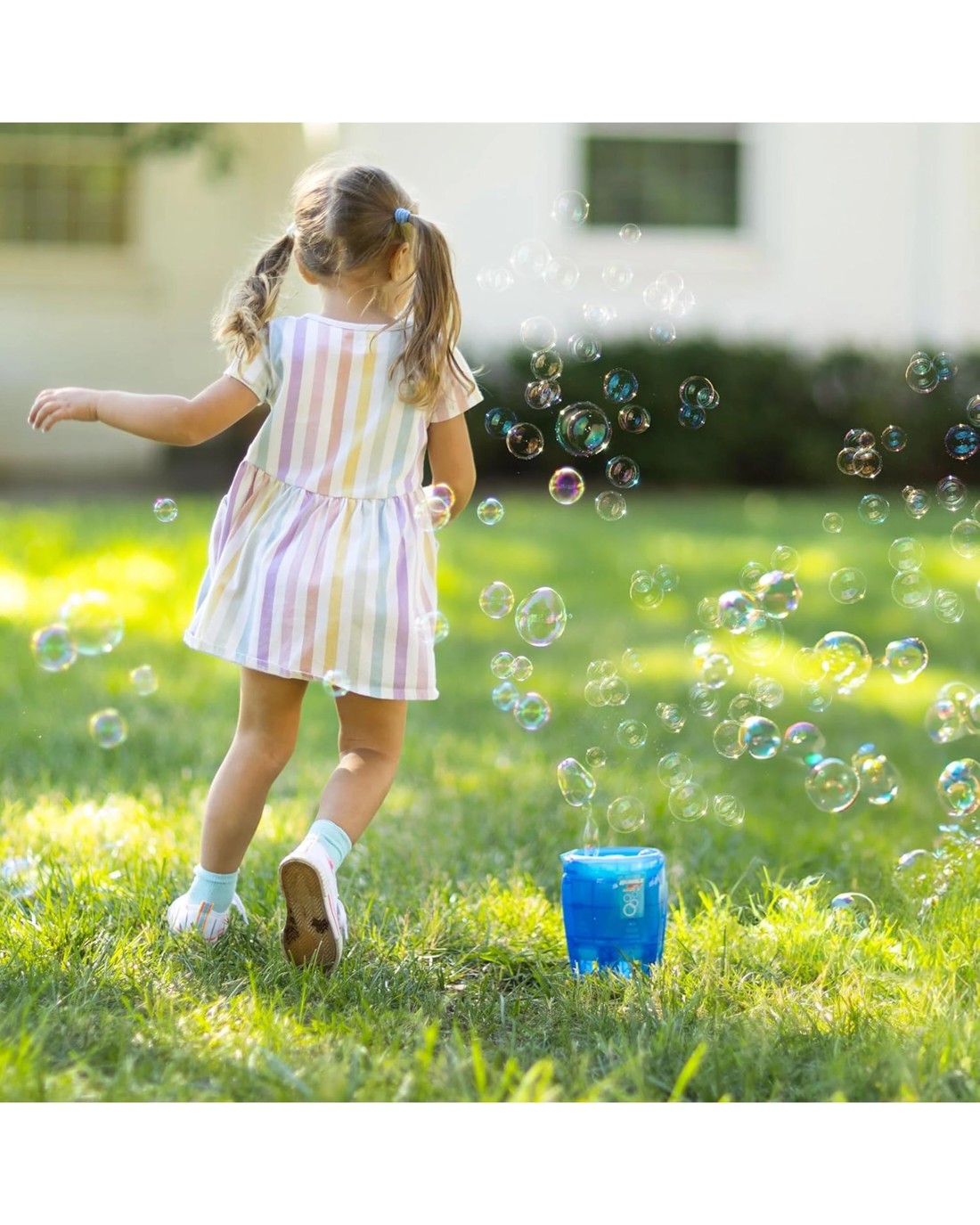 - Blow tons of huge bubbles high into the sky