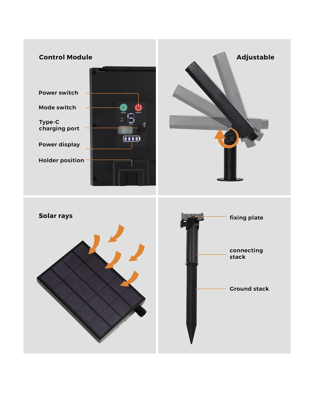 Charge method: Solar charge/USB charge