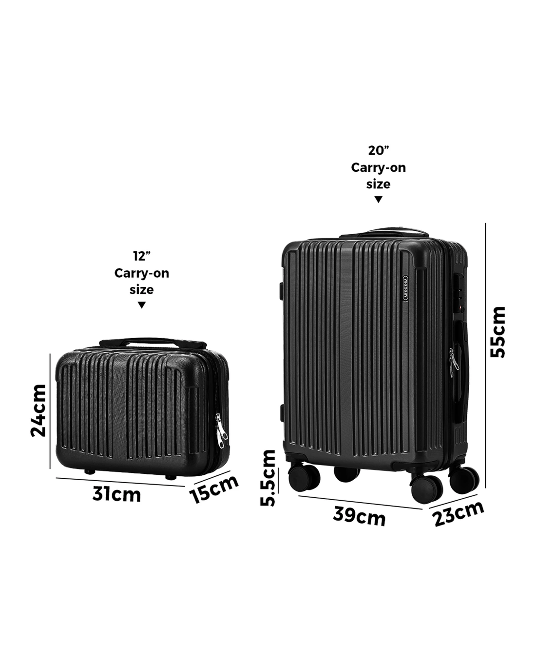 Comprising a large 20" suitcase and a smaller 12" trolley bag, the two-piece hard shell set is crafted from durable ABS and equipped with sturdy aluminium handles, double head zippers and reinforced corners to withstand robust handling at airport check-ins, baggage claim areas and trips afar. Plus, TSA-approved locks also ensure that proceeding through customs will be a breeze with the relevant airport authorities.