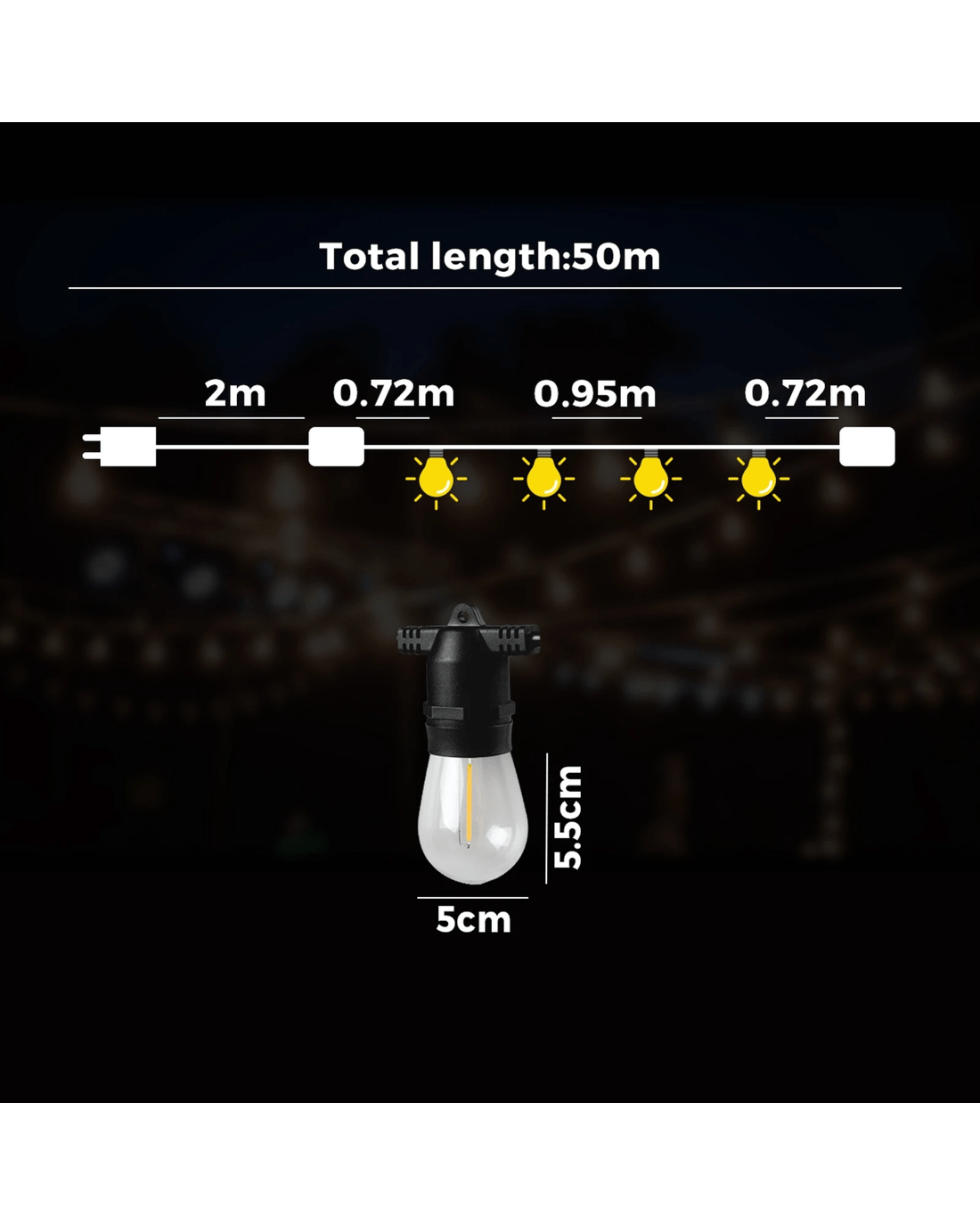 Mazam 50M LED Outdoor Festoon String Lights - Black