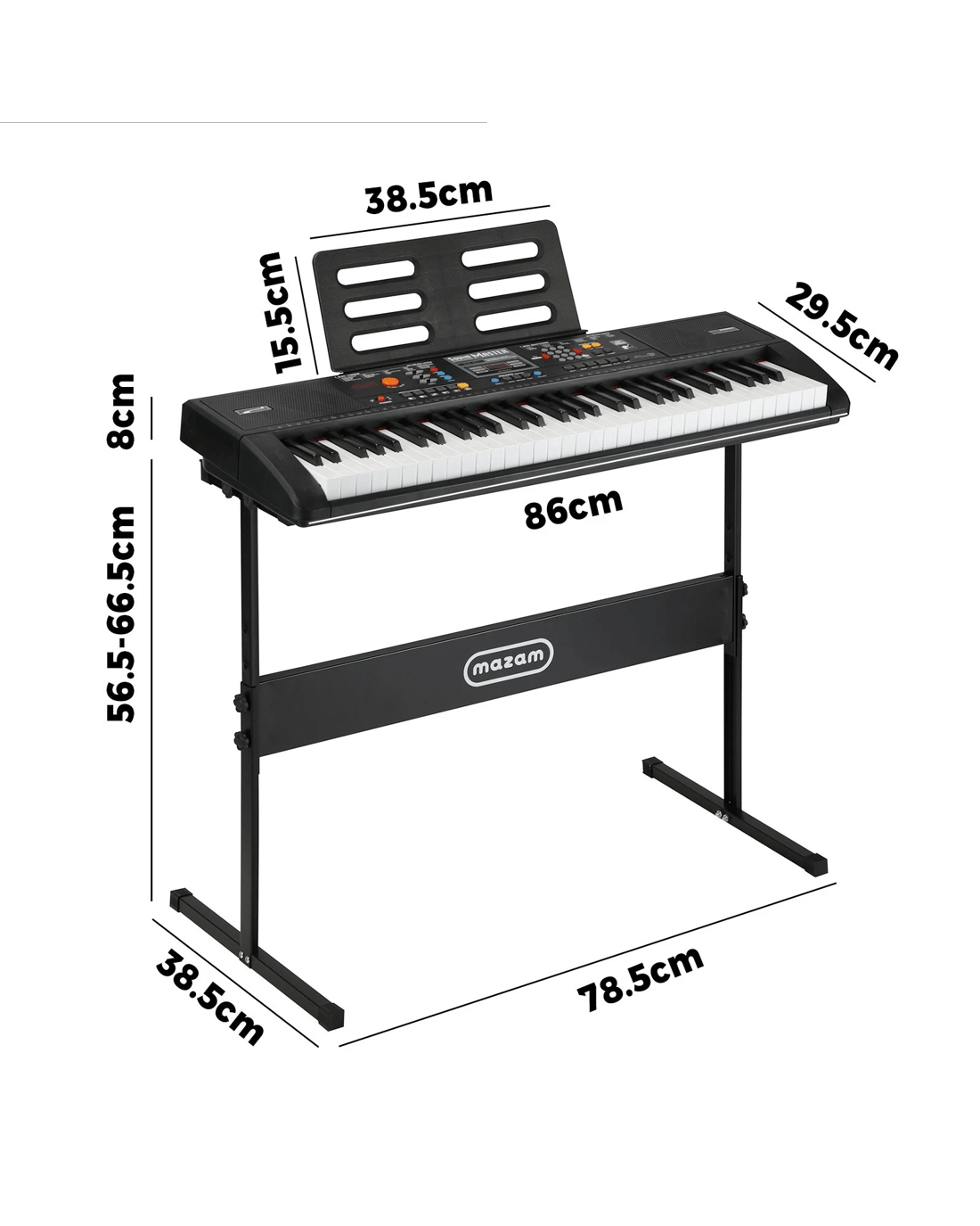 Keyboard dimensions: 86cm x 29.5cm x 8cm