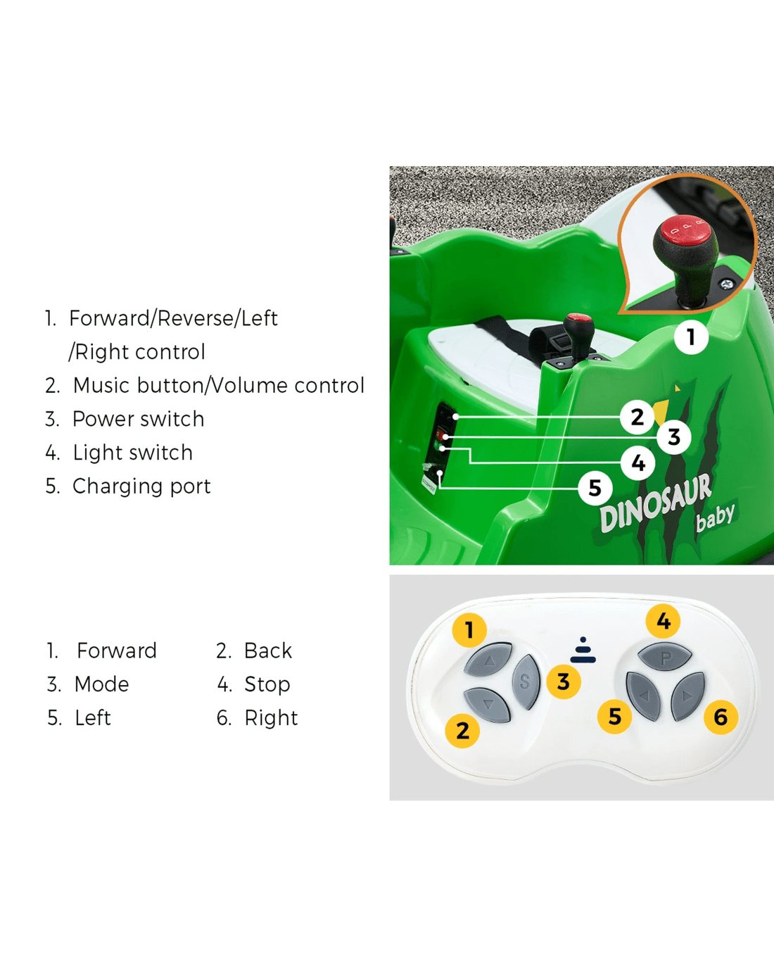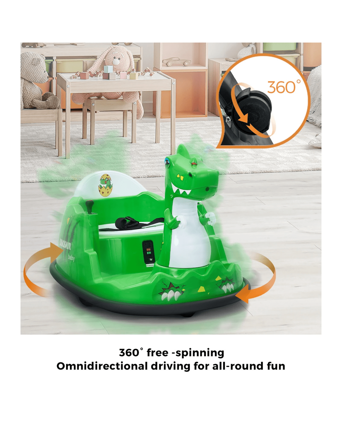 Mazam Kids Ride On Car Bumper Electric Cars Toy Remote Control Spray Led Trex - Green