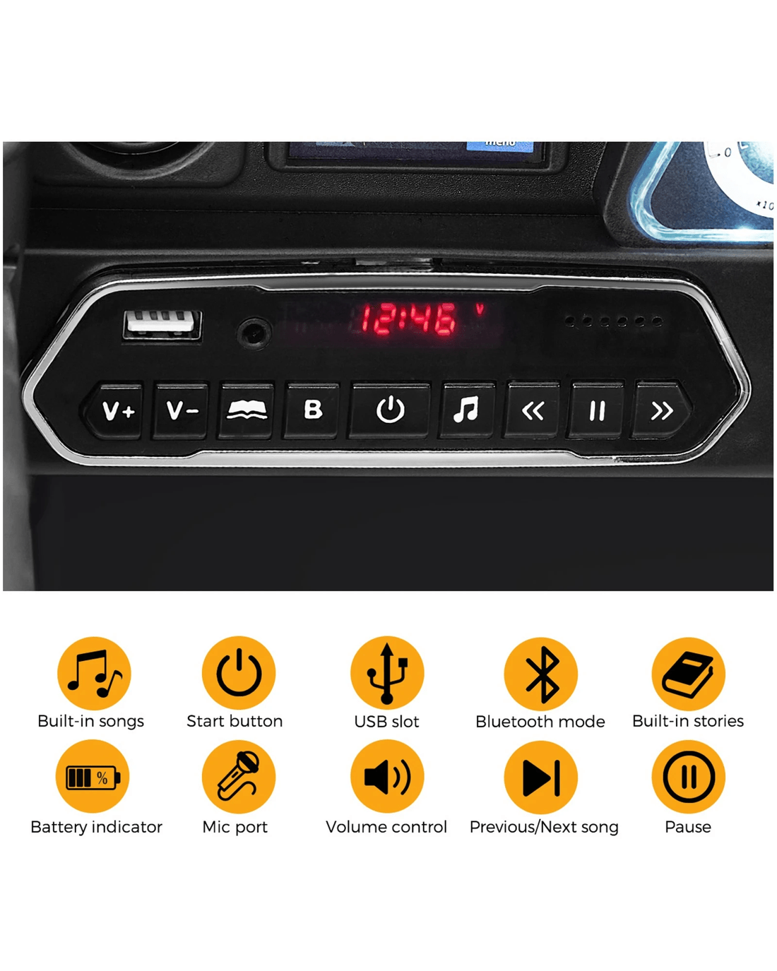 Inside the vehicle, there is plenty of in-car entertainment to keep your child immersed in a music-filled drive with workable dashboard features including a Bluetooth function mode. Never a dull moment. Always a spirited drive. Plus, with a range of up to 25km on a single charge, this ride on car is ready for up to 2.5 hours of uninterrupted amusement.