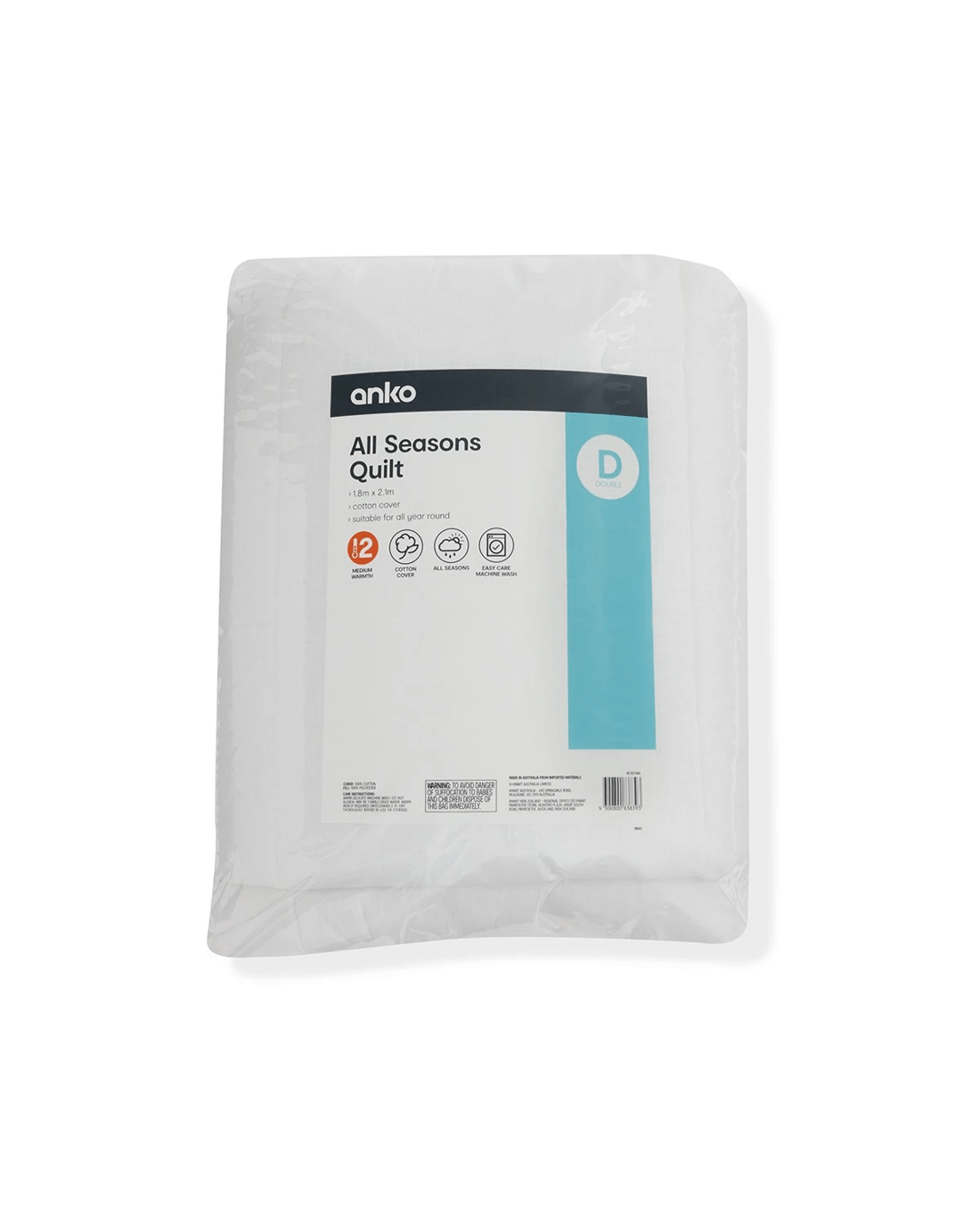 Medium Warmth All Seasons Quilt - Double Bed, White