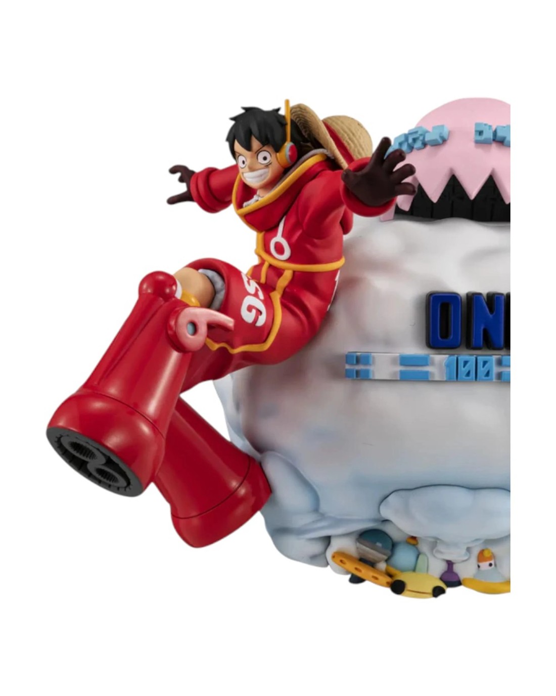 Monkey D. Luffy joins the Chara Bank Standard series! Enjoy the dynamic Luffy alongside the simple yet colorful "Future Island", Egghead. It also functions as a coin bank, holding over 50 ¥500 coins.