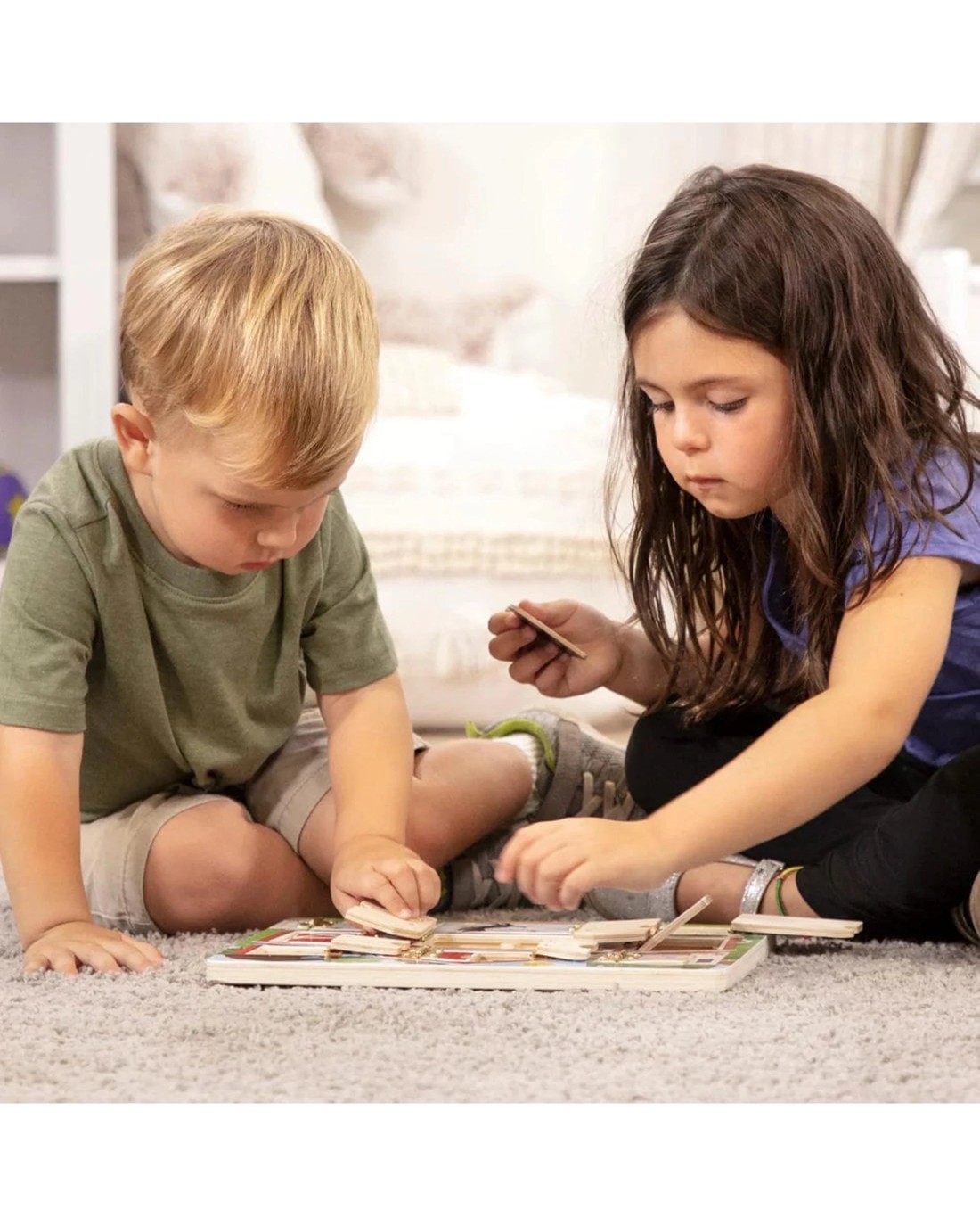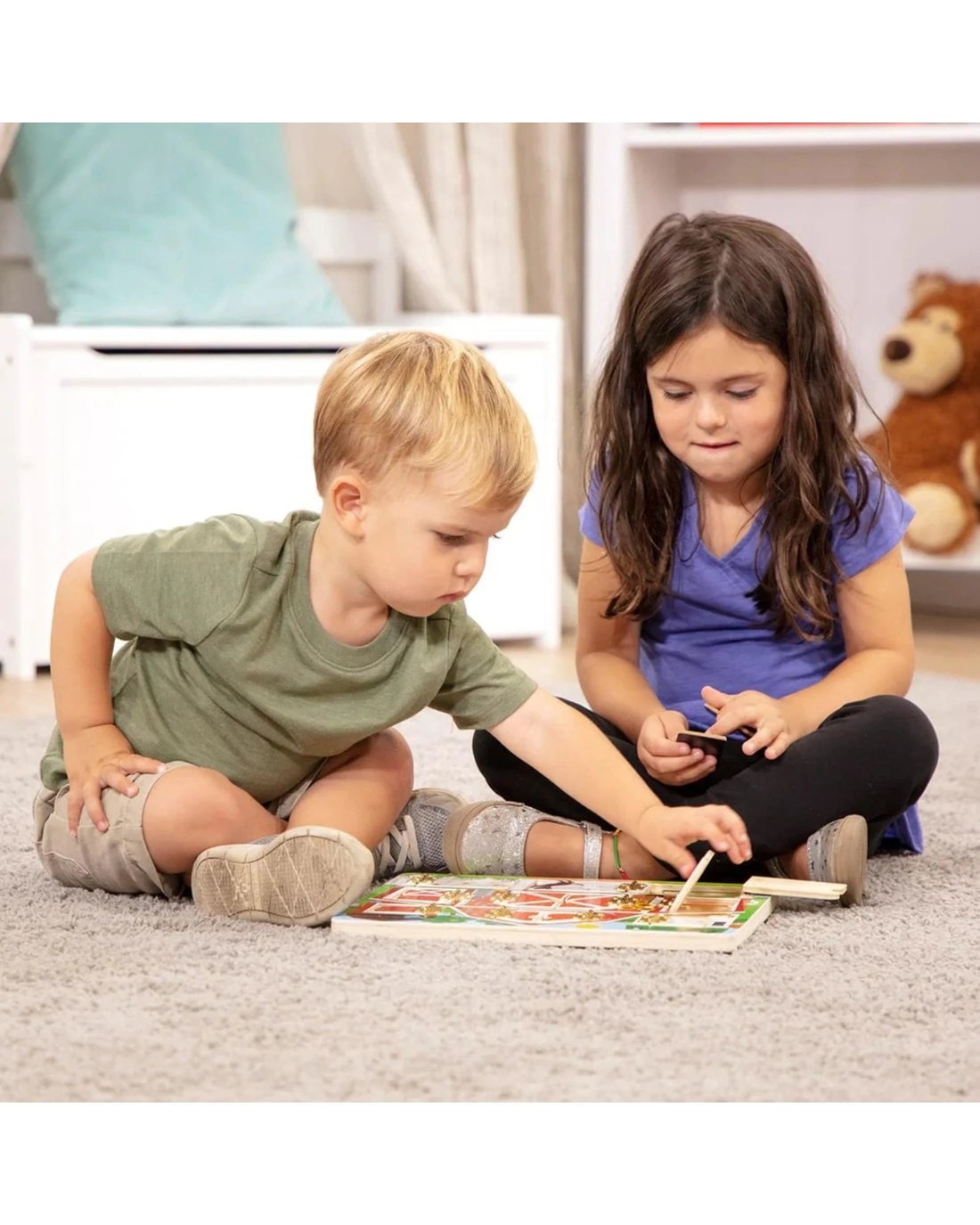 - Magnetic puzzle board with hinged doors for open-and-close fun