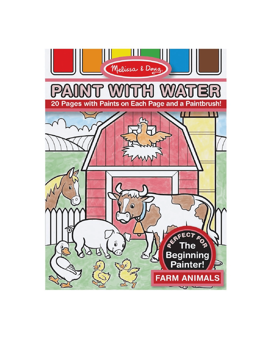 The Melissa & Doug Paint With Water Farm Animals is perfect for new artists. Each page has a paint palette attached to it so you just add water to your brush and bring the pictures to life.
