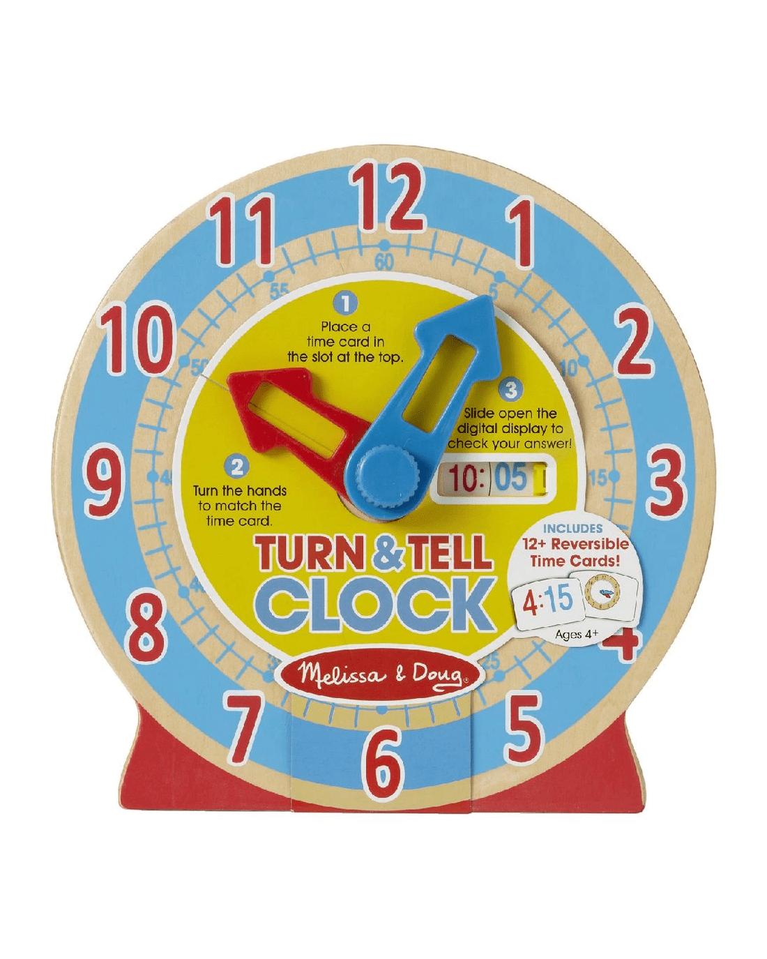 The Melissa & Doug Turn and Tell Clock is ideal for early learners who are ready to tell the time. It comes with 13 double-sided time cards to help with practice along the way.