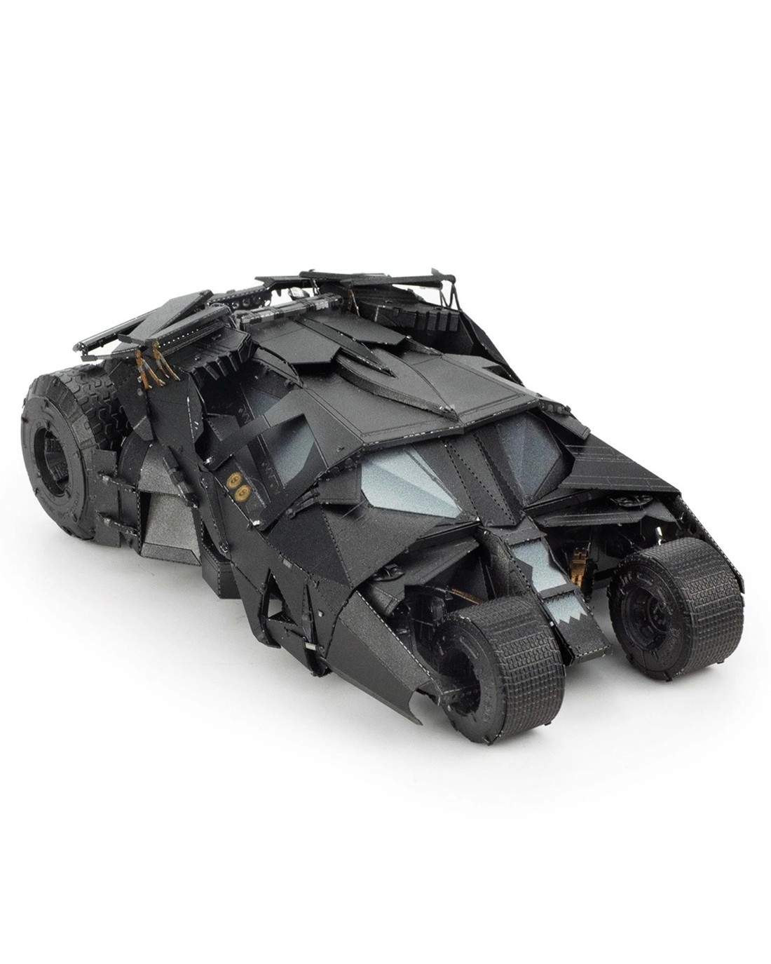 This Metal Earth Batman Tumbler Model Kit lets you create a 3D version of the iconic vehicle from the Batman movie franchise. A true masterpiece of miniature engineering, your exquisite model is designed to delight and inspire even the most discerning Caped Crusader collectors! Starting out as a set of 3 laser-etched steel sheets, simply pop out the tiny pieces and then bend, fold and assemble them using the intricate slot and tab design. Once completed, your replica will leave you in awe of its impeccable attention to detail, from it's sleek aerodyamic design to it's imposing armoured exterior! Your iconic black Tumbler comes with an array of weapons and gadgets, each one meticulously crafted to perfection. A must-have for any true fan of the Dark Knight! Ages: 14+