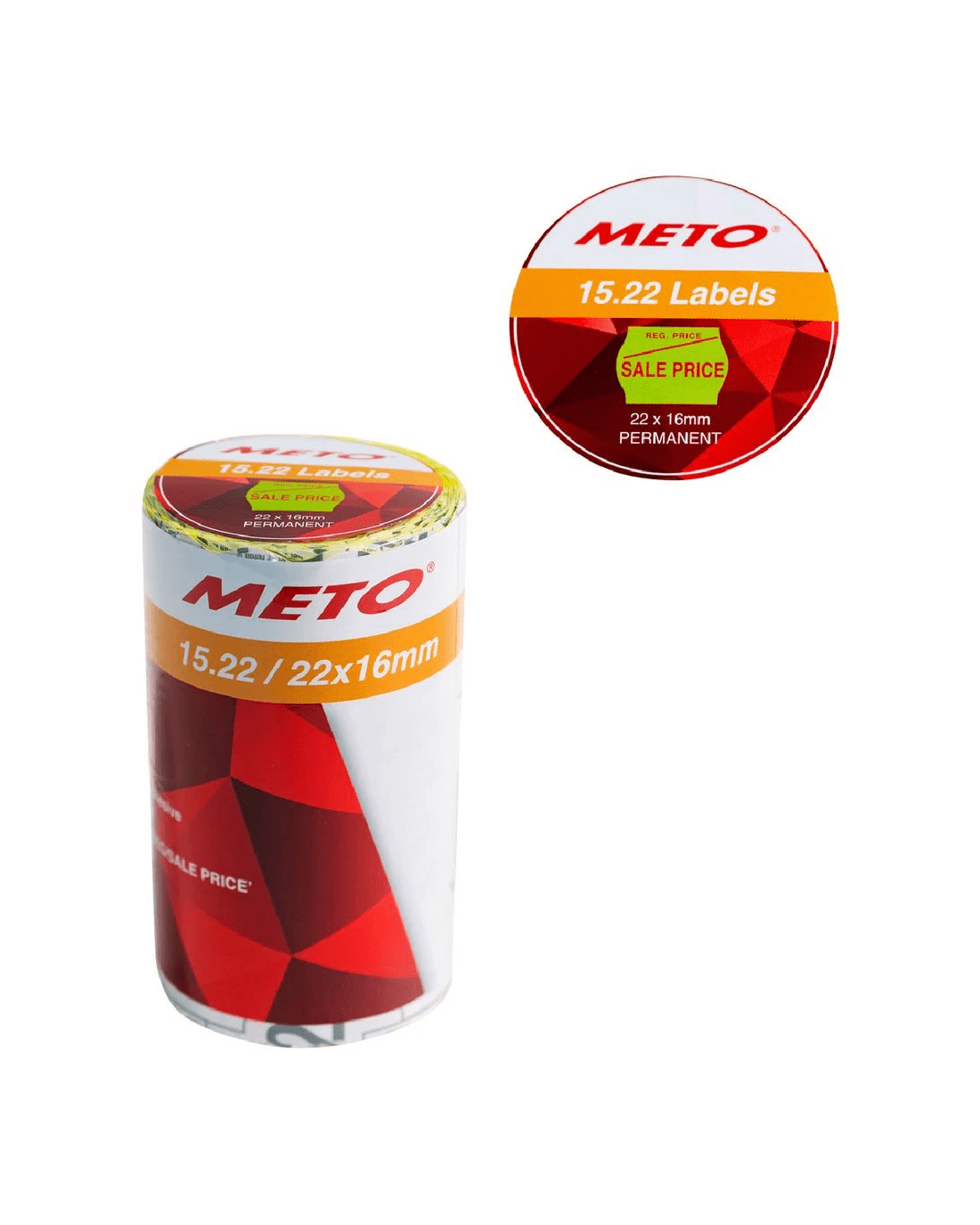 Restock your Checkpoint Meto label gun with removable Meto 2 Line Series Labels. Each label is 22 x 16 mm in size and can print 8 digits on the top line and 7 digits on the bottom line.