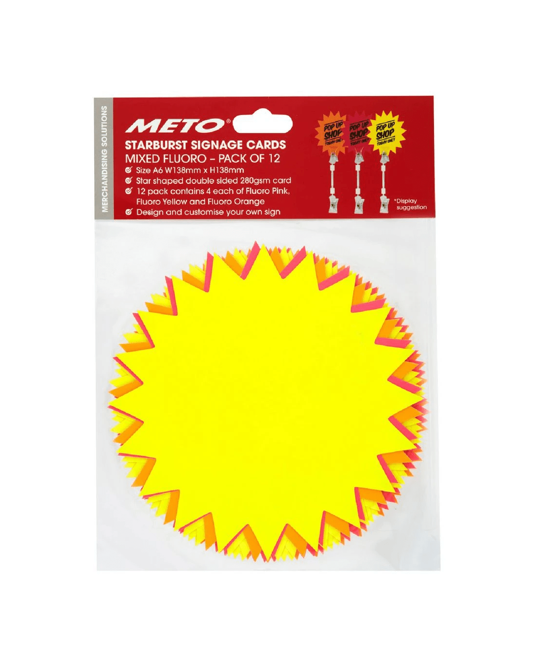 Sold by OfficeworksMeto A6 Starburst Sign Cards Fluoro 12 Pack