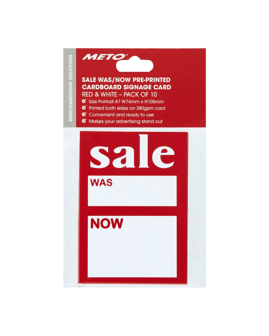These Meto Sign Cards can be used to promote your sales and pricing. They are pre-printed with 'Was/Now' so you can start using them right away and are A7 size for price pointing multiple merchandised items.