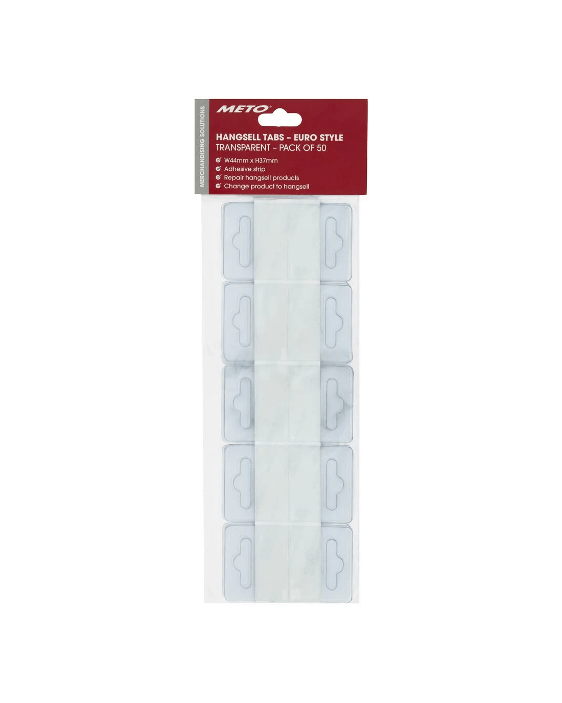 These Meto Hangtabs come in a handy pack of 50 so you can stock up at once. They can be used to repair hangsell packaging or to change items into hangsell products.