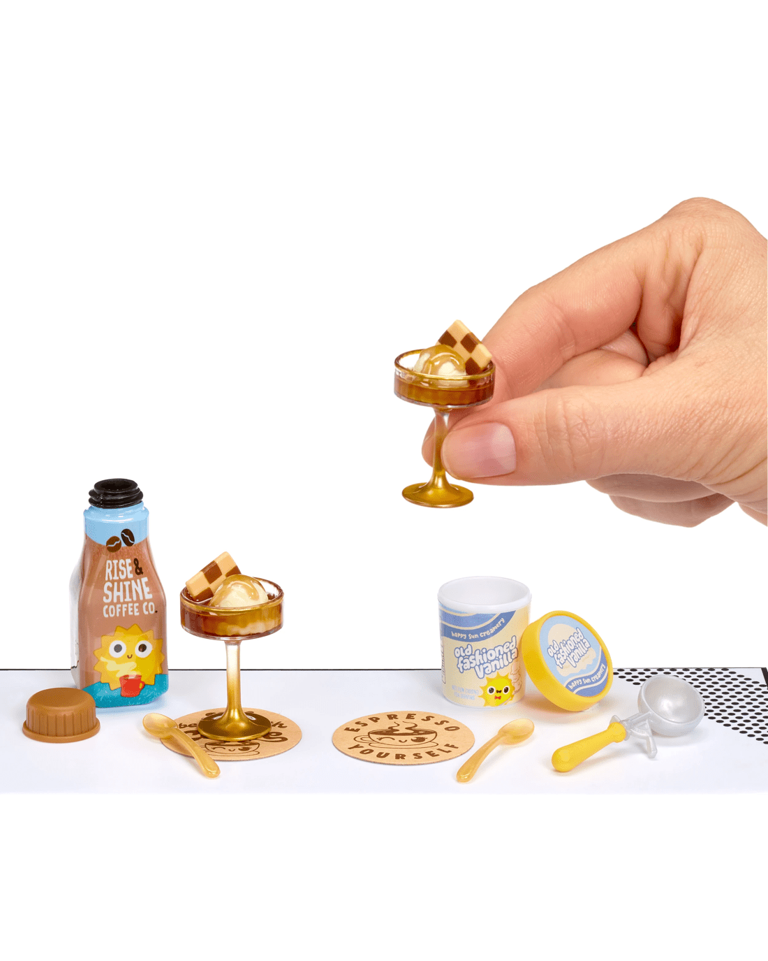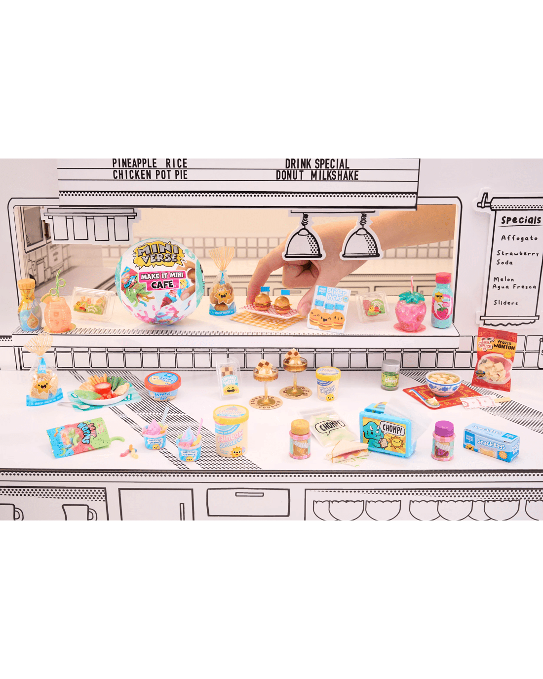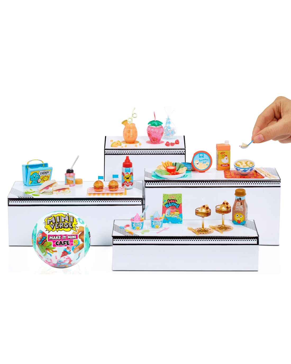 - Collect them all: The fun doesn't stop there! Your finished replica is not the only item worth collecting. From a mini ice cream scooper, to a mini lunch box, to various themed mini coasters - there are so many unique Make It Mini Cafe™ Series 5 replica ingredients, packages and accessories to make and collect your very own mini collectibles
