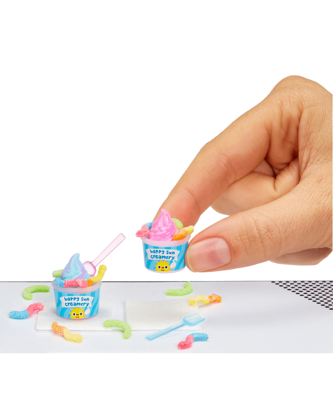 - Unbox it: Each ball comes with realistic mini 'ingredients' and accessories to make your own mini replicas of your favourite snacks and desserts! Each package is a surprise so you won't know which mini you have until you unbox it! There are 8 to collect in this series!