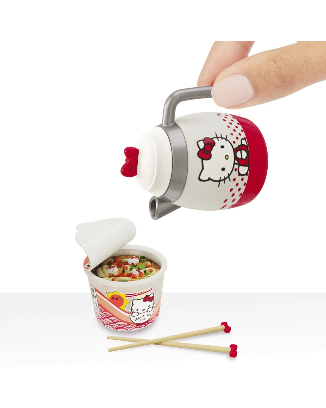 - Unbox it: Each ball comes with realistic mini items to make your own mini replicas of your favourite Hello Kitty themed foods, including a Hello Kitty themed Bento Box, Fruit Boba Tea and even Instant Spicy Noodles! Each package is a surprise so you won't know which mini you have until you unbox it!