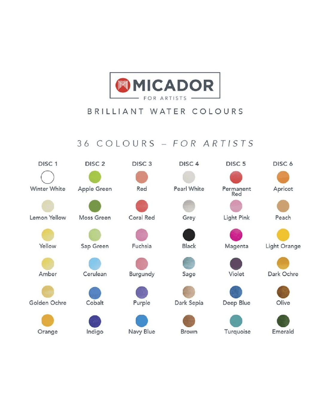 Sold by OfficeworksMicador for Artists Brilliant Watercolour Disc 36 Pack