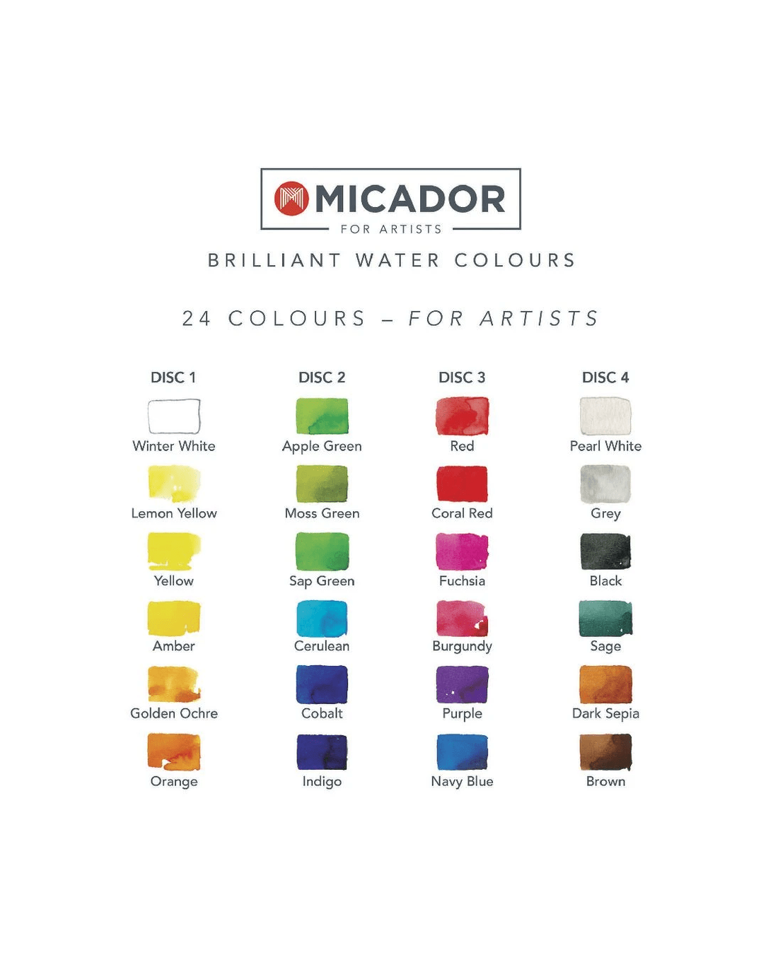 Micador For Artists Brilliant Watercolour Discs 24 Pack