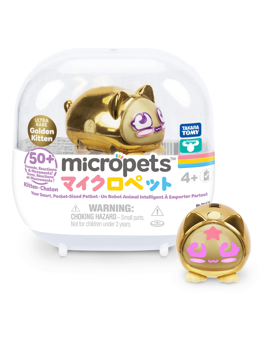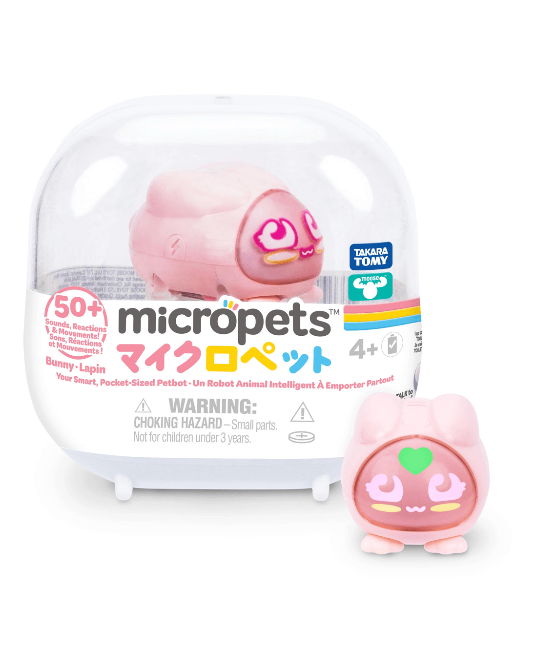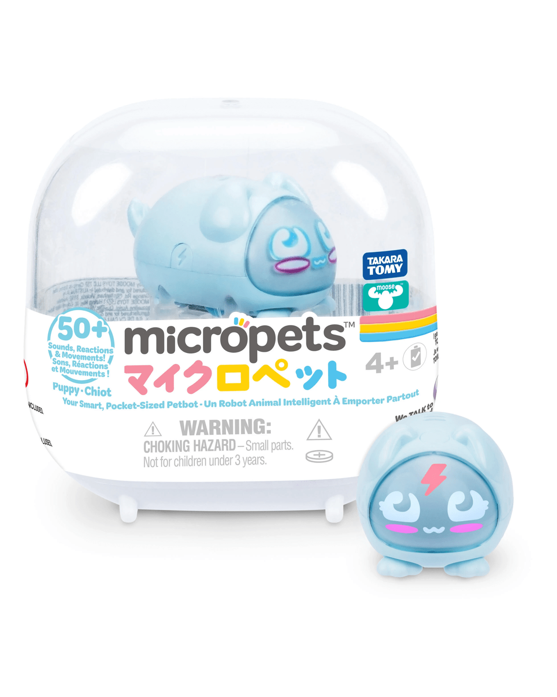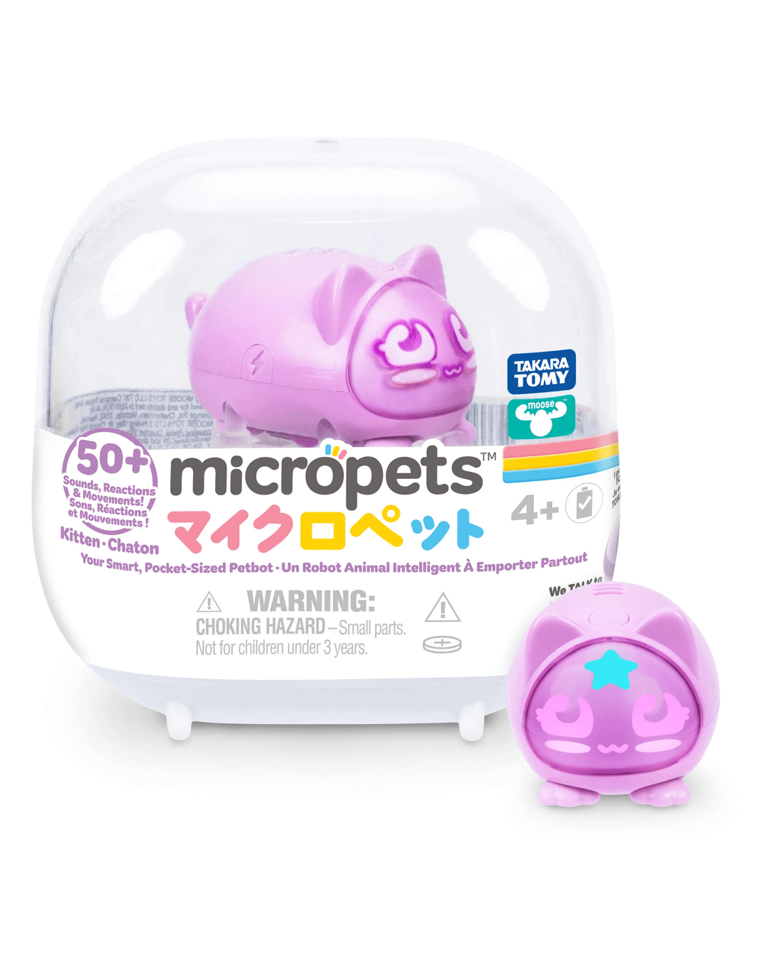 Care for your Micropet by talking, charging and even placing it on the toilet when needed! Respond correctly to their needs and unlock five levels of play with new sounds, movements and celebrations. With over 50 reactions and playful movements, Micropets keep kids engaged and entertained.