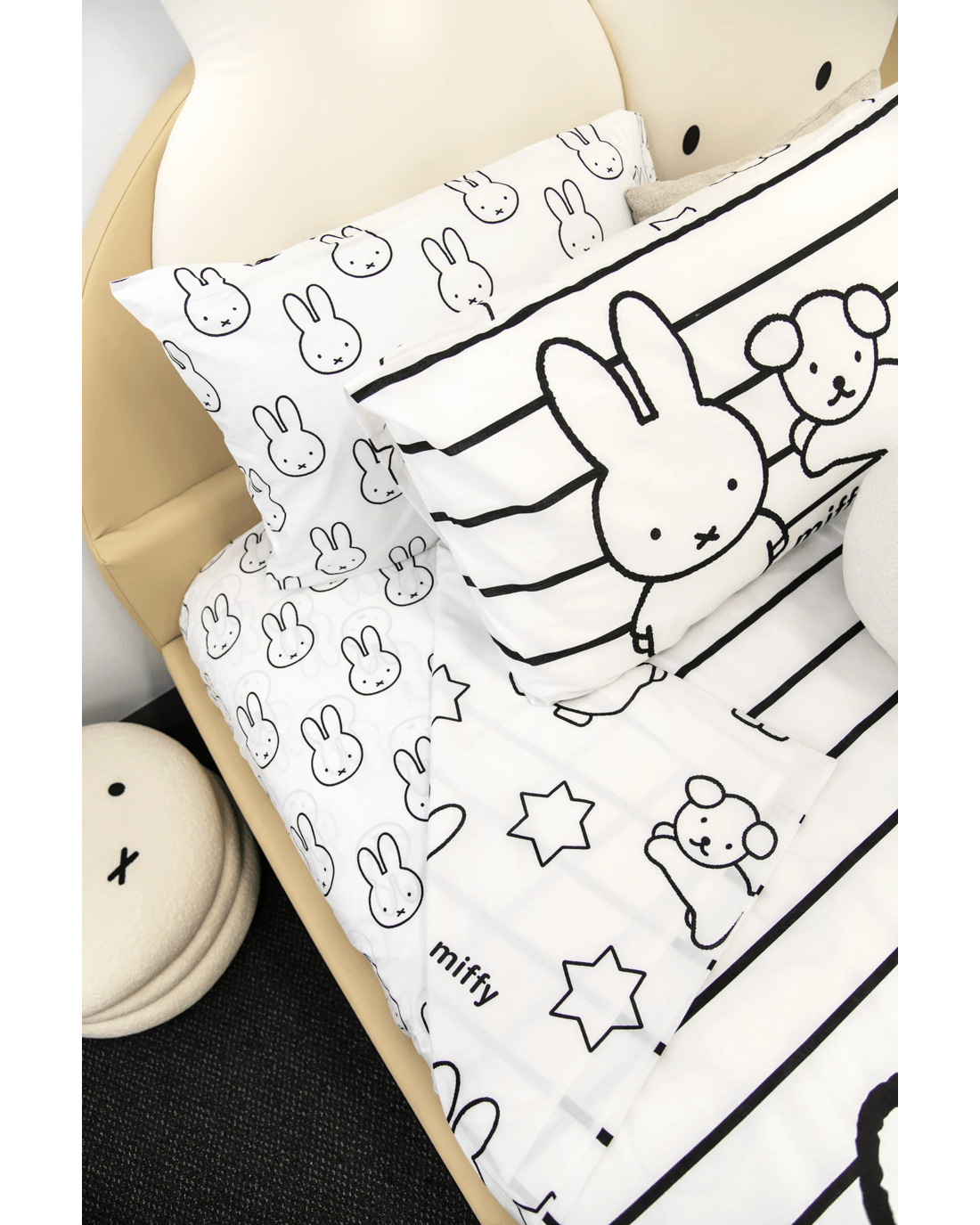 Add a playful touch to bedtime with the Miffy Kids Quilt Cover Set. Made from soft cotton, this set features the friendly Miffy character on a fresh white background, creating a cosy and inviting atmosphere for your child. Its reversible design gives you two delightful ways to style the room, making bedtime even more special. It’s also easy to keep clean, as it can be popped straight into the washing machine. Spoil your little one with comfort and fun, and let Miffy be the highlight of their sleep routine. Bring a smile to every night with this lovely quilt cover set.