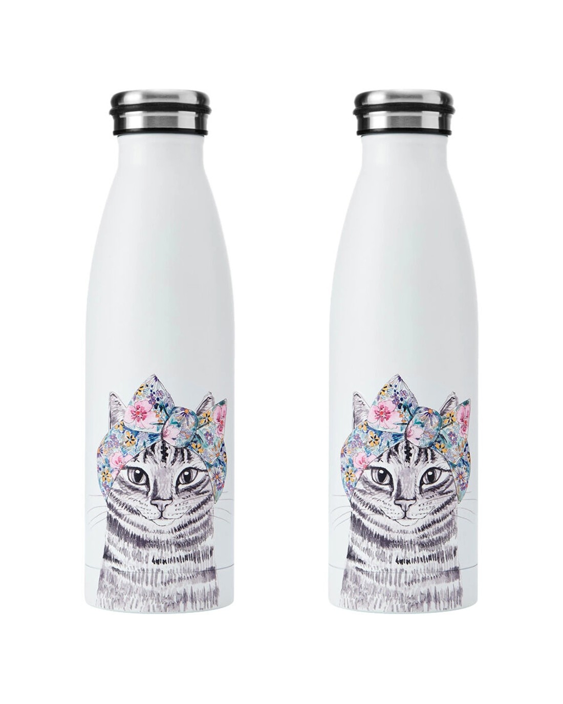 Mikasa 2PK Cat Themed Sleeved Insulated Water Bottle Vacuum Insulated 500mL - White