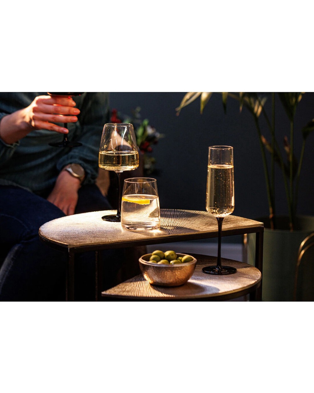 Complete Set for Entertaining Includes four elegant champagne glasses suitable for gatherings and celebrations.