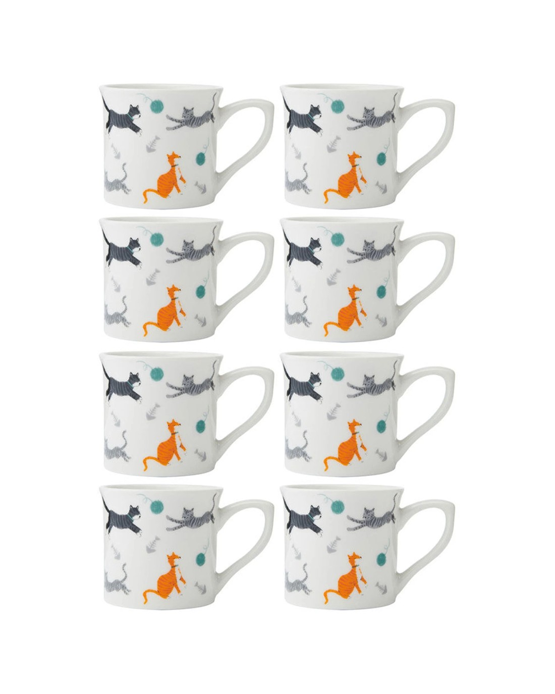 Mikasa 8PK Cat Fluted Coffee Mug Cup 250ml Fine China Microwave Dishwasher Safe - Multi